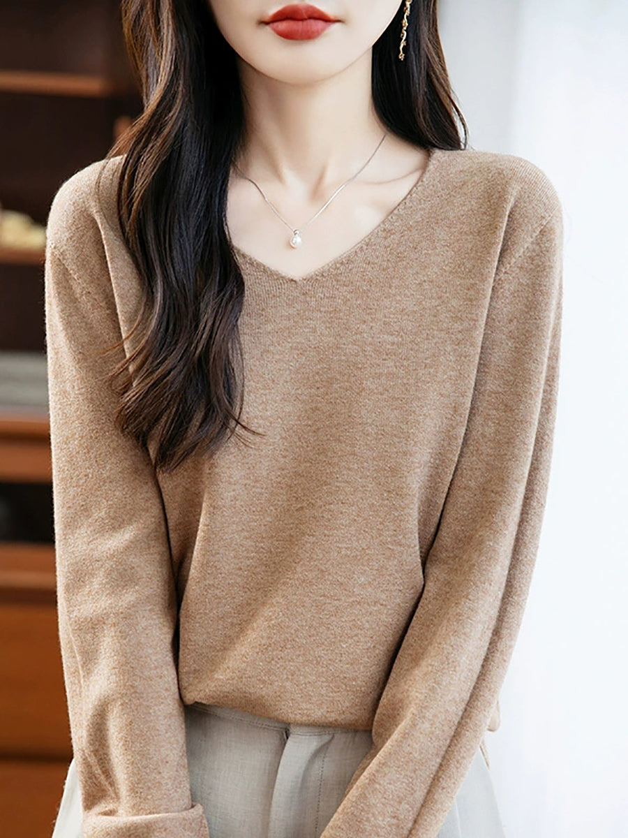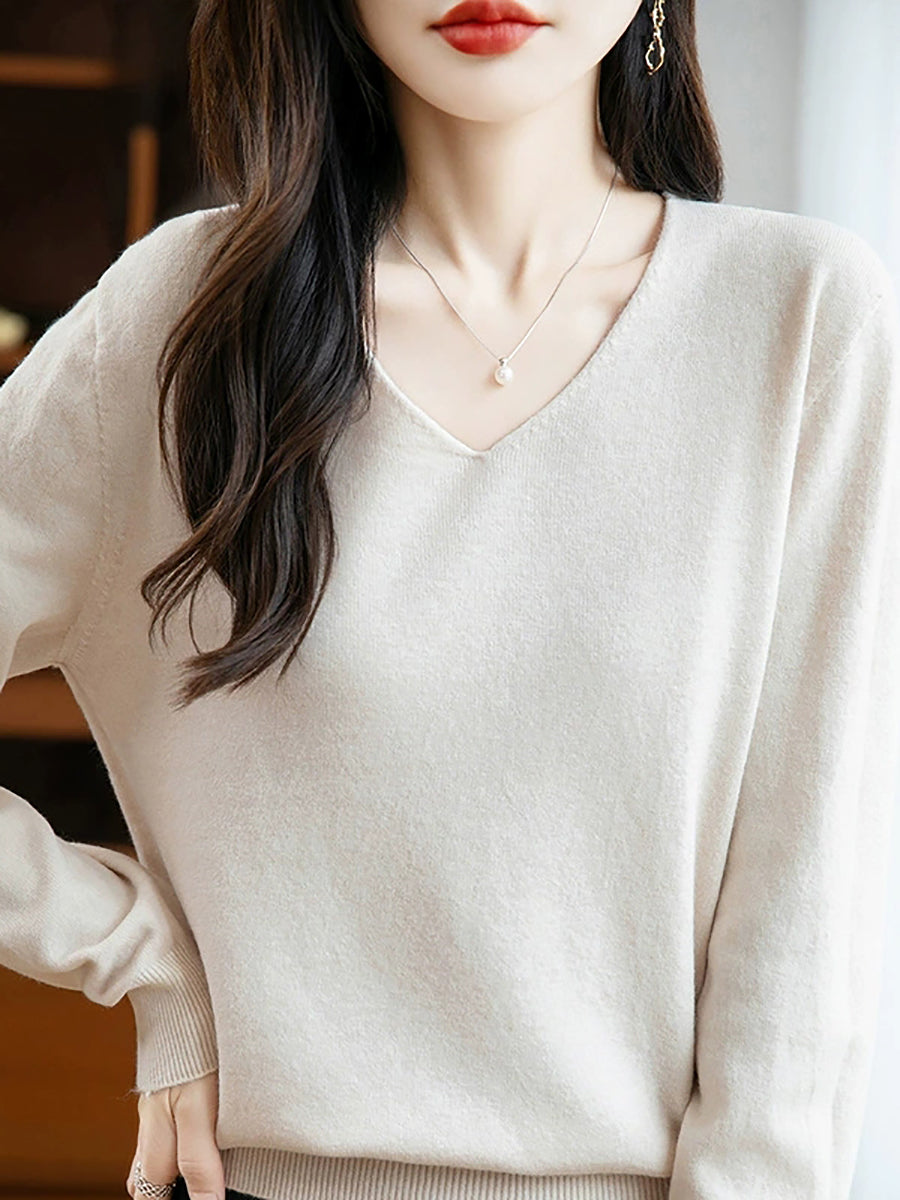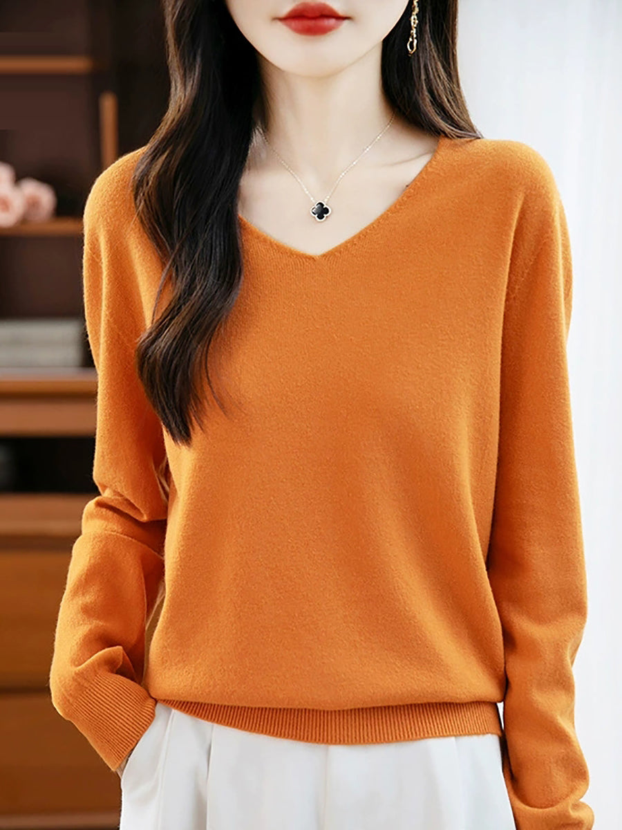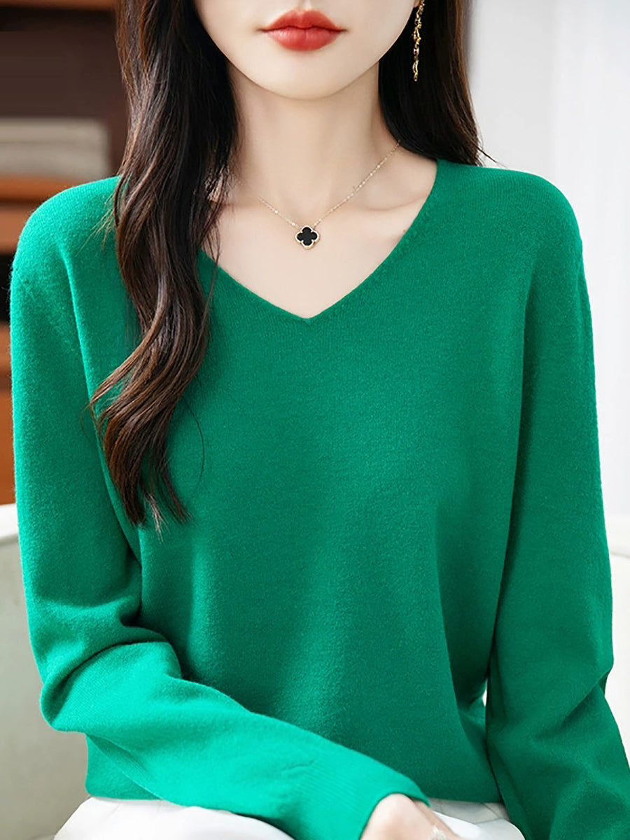 Ženski proljetni ležerni pulover s V-izrezom u čistim bojama