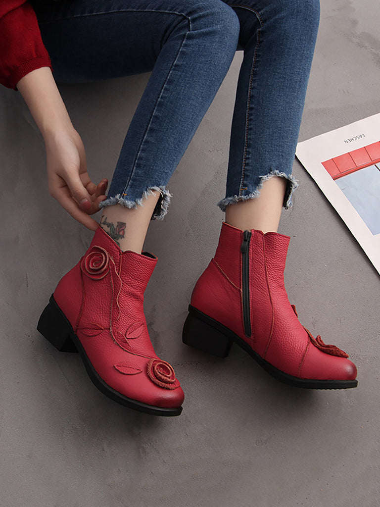 Ženske retro kožne cvjetne čvrste čizme na srednju petu