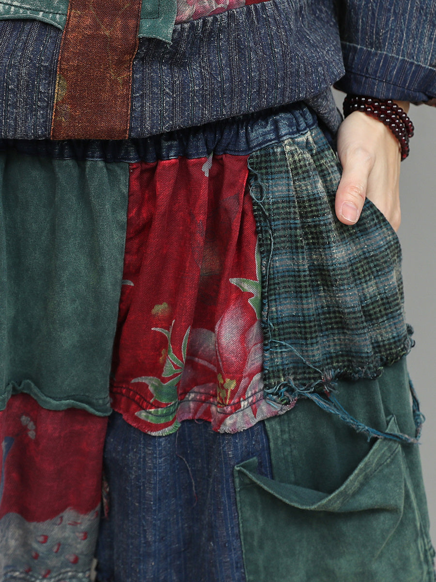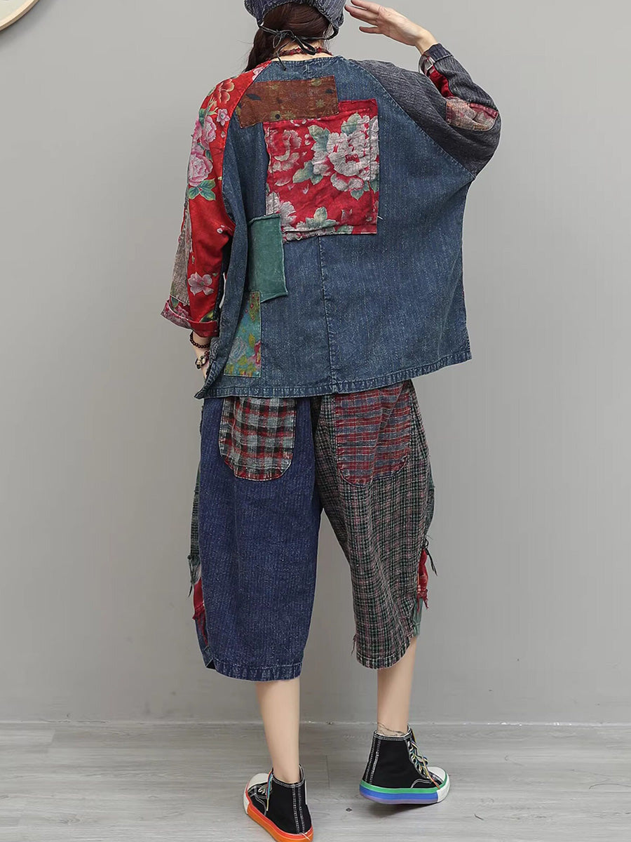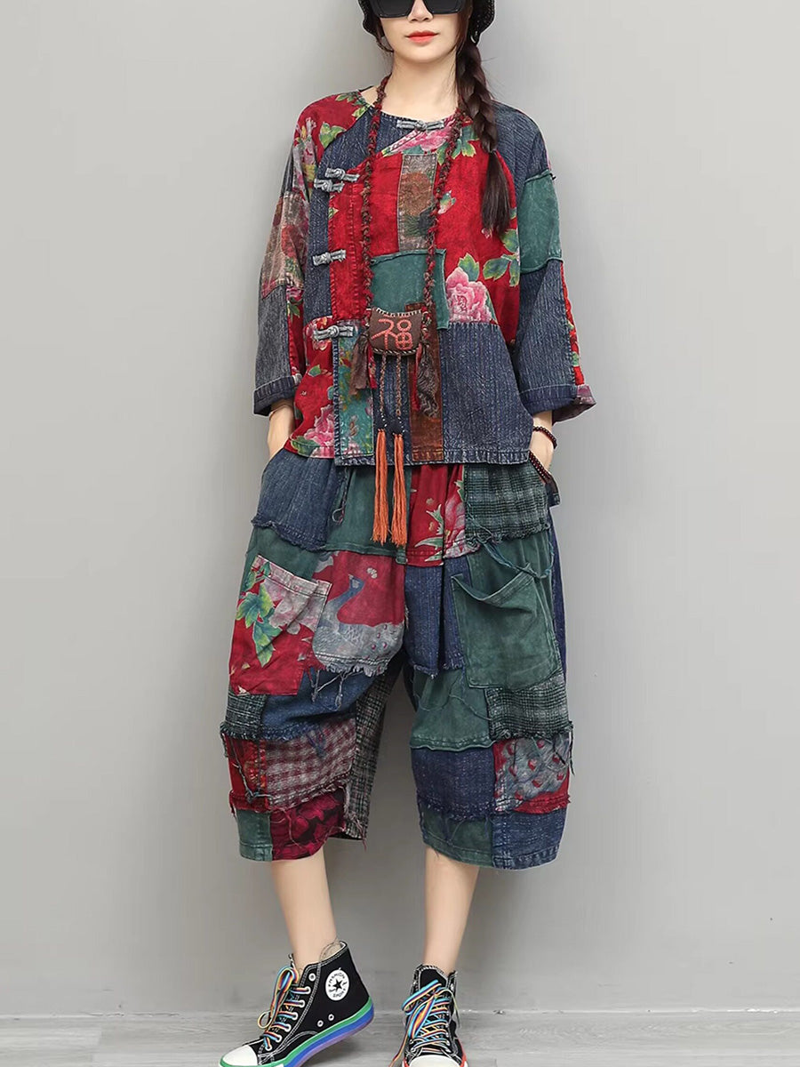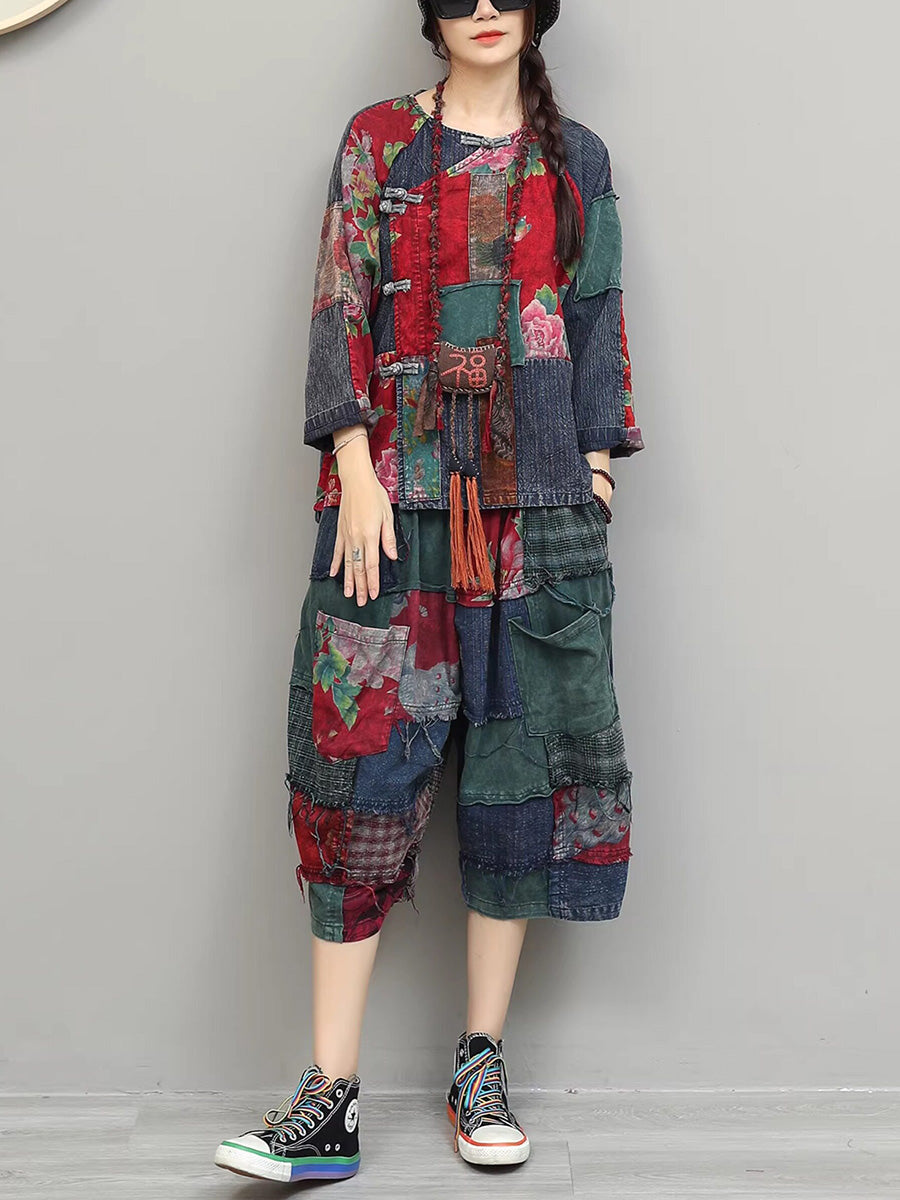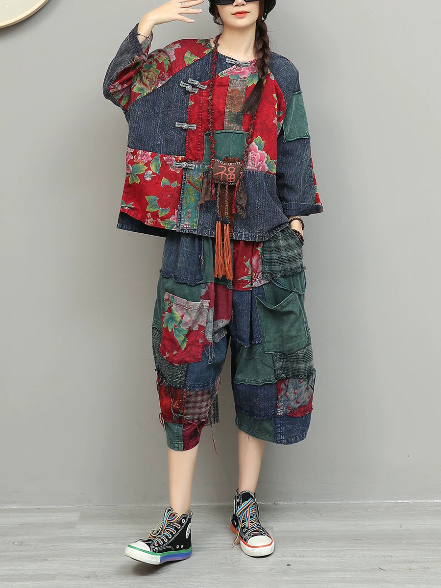 Ženska ljetna etnička cvjetna odijela s patchworkom