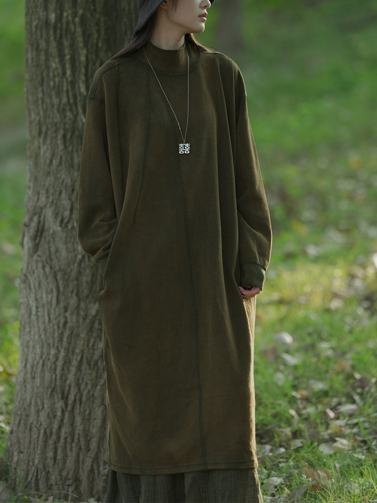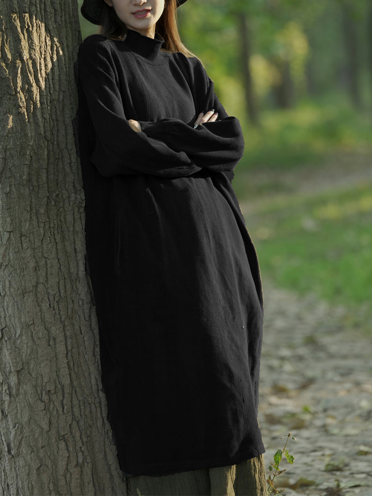 Ženska jesenska ležerna pamučna haljina s ovratnikom u čistoj boji