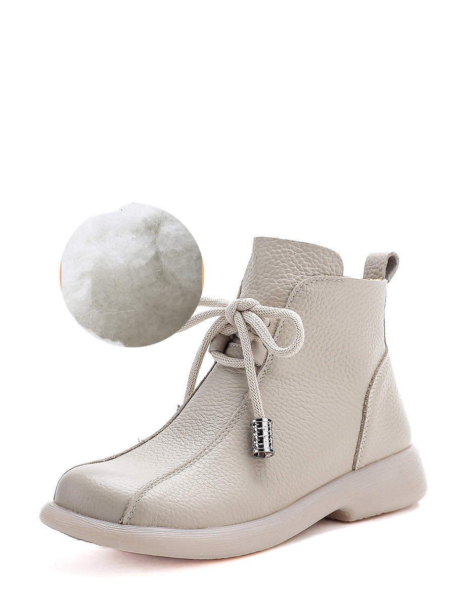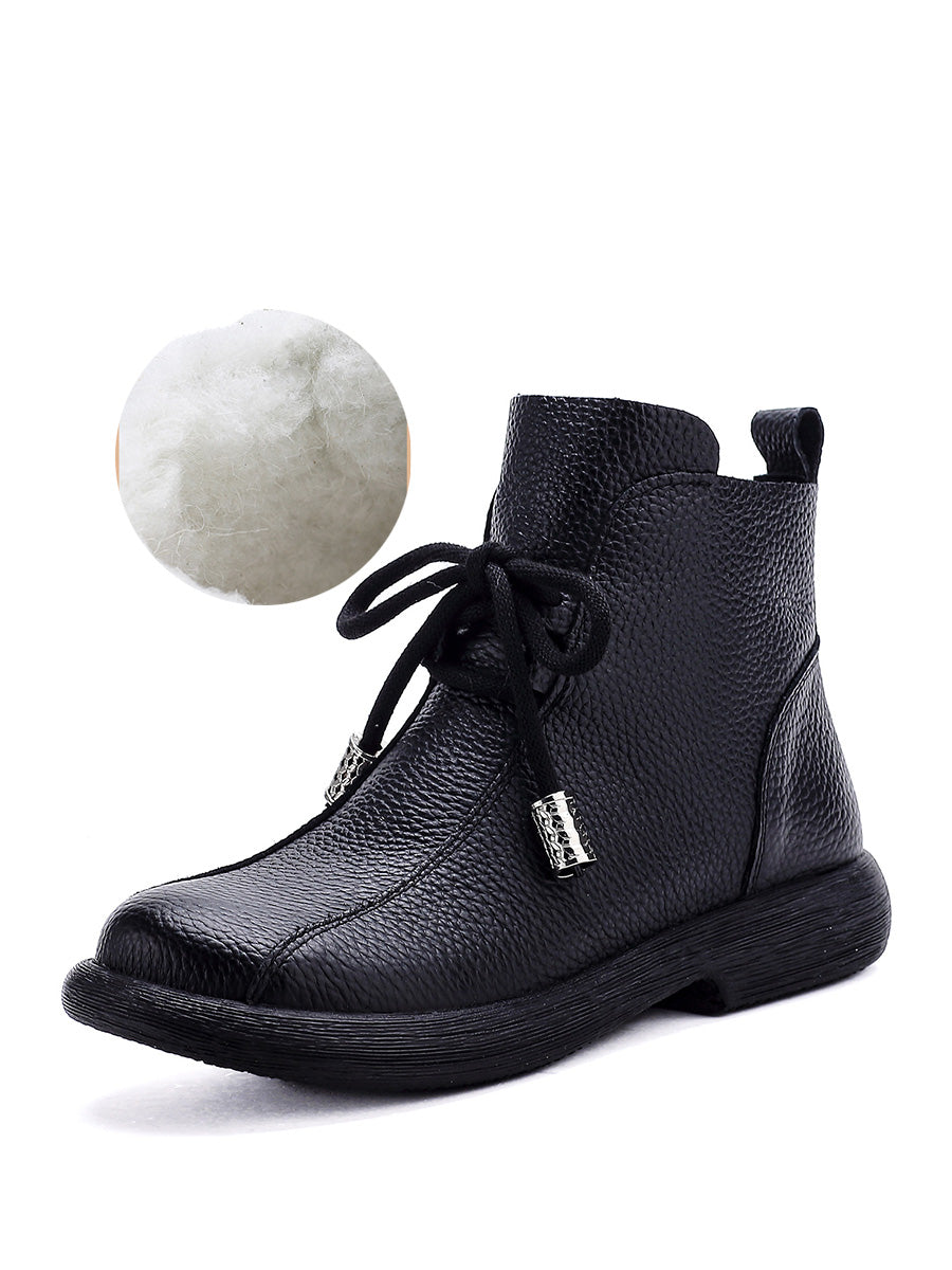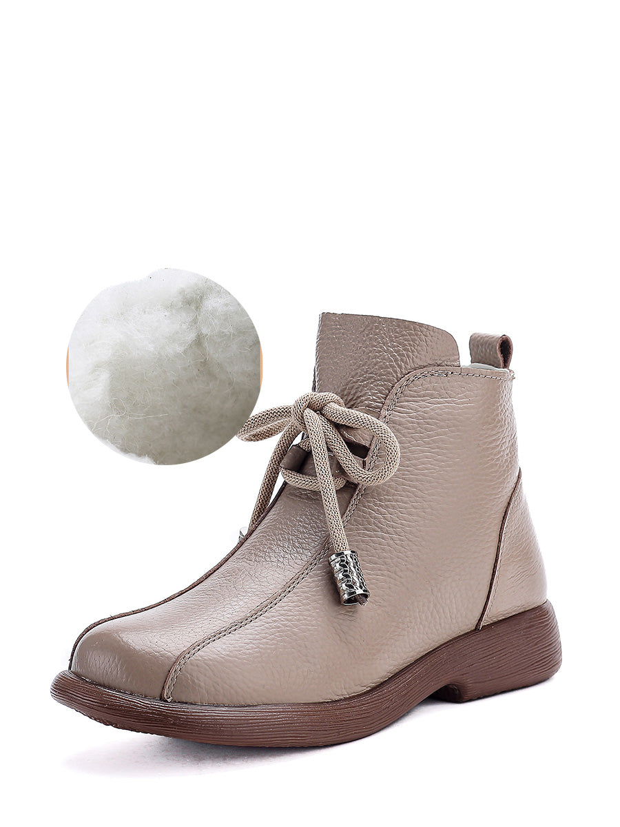 Ženske retro zimske čizme od prave kože s niskom petom