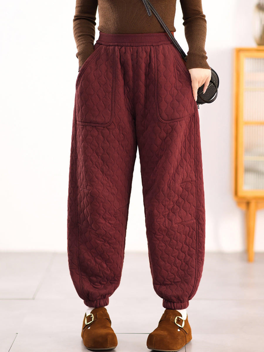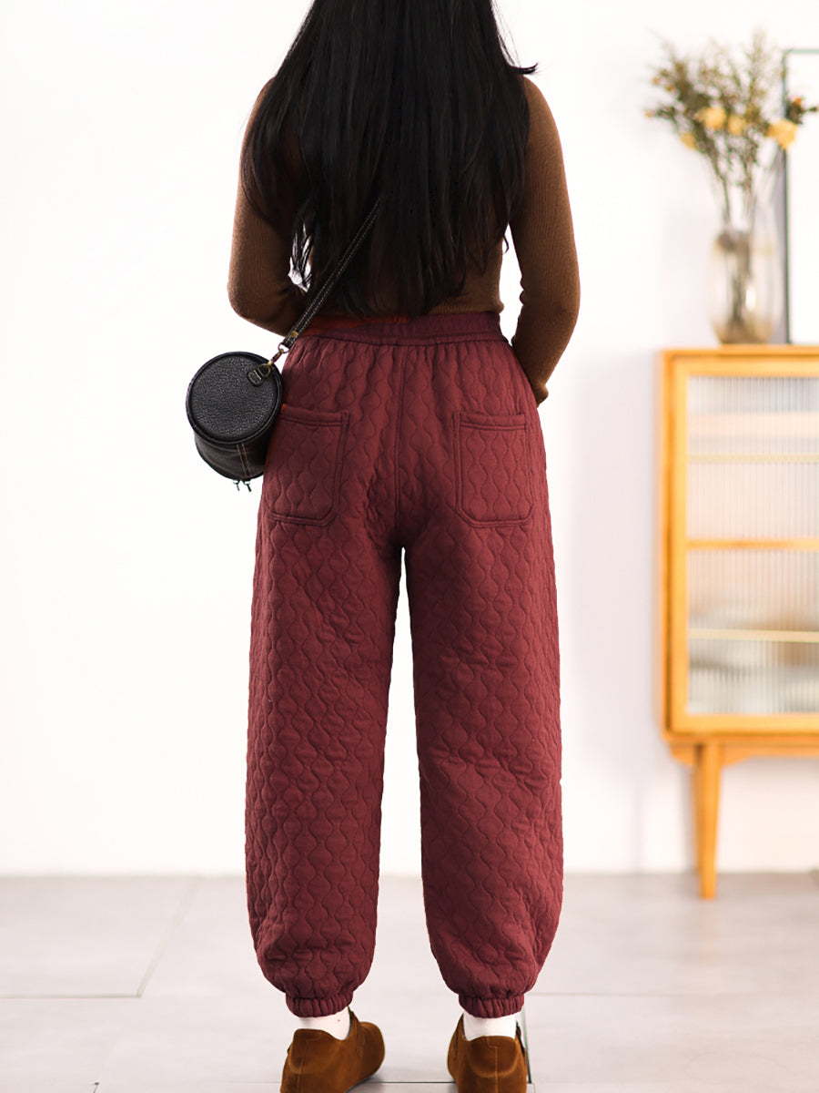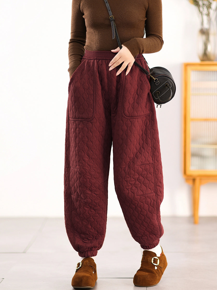 Ženske zimske ležerne podstavljene harem hlače čiste boje