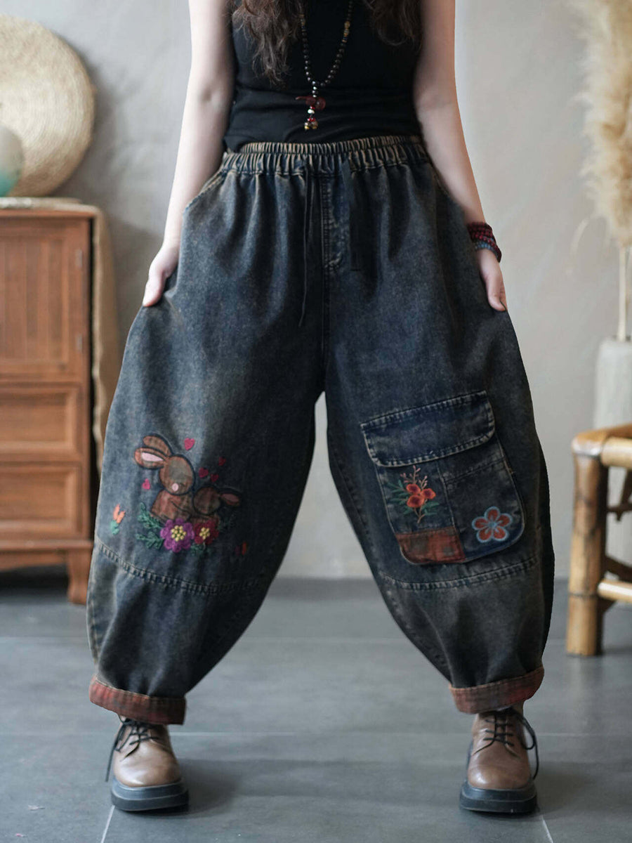 Ženske ljetne traper harem hlače s žirafom