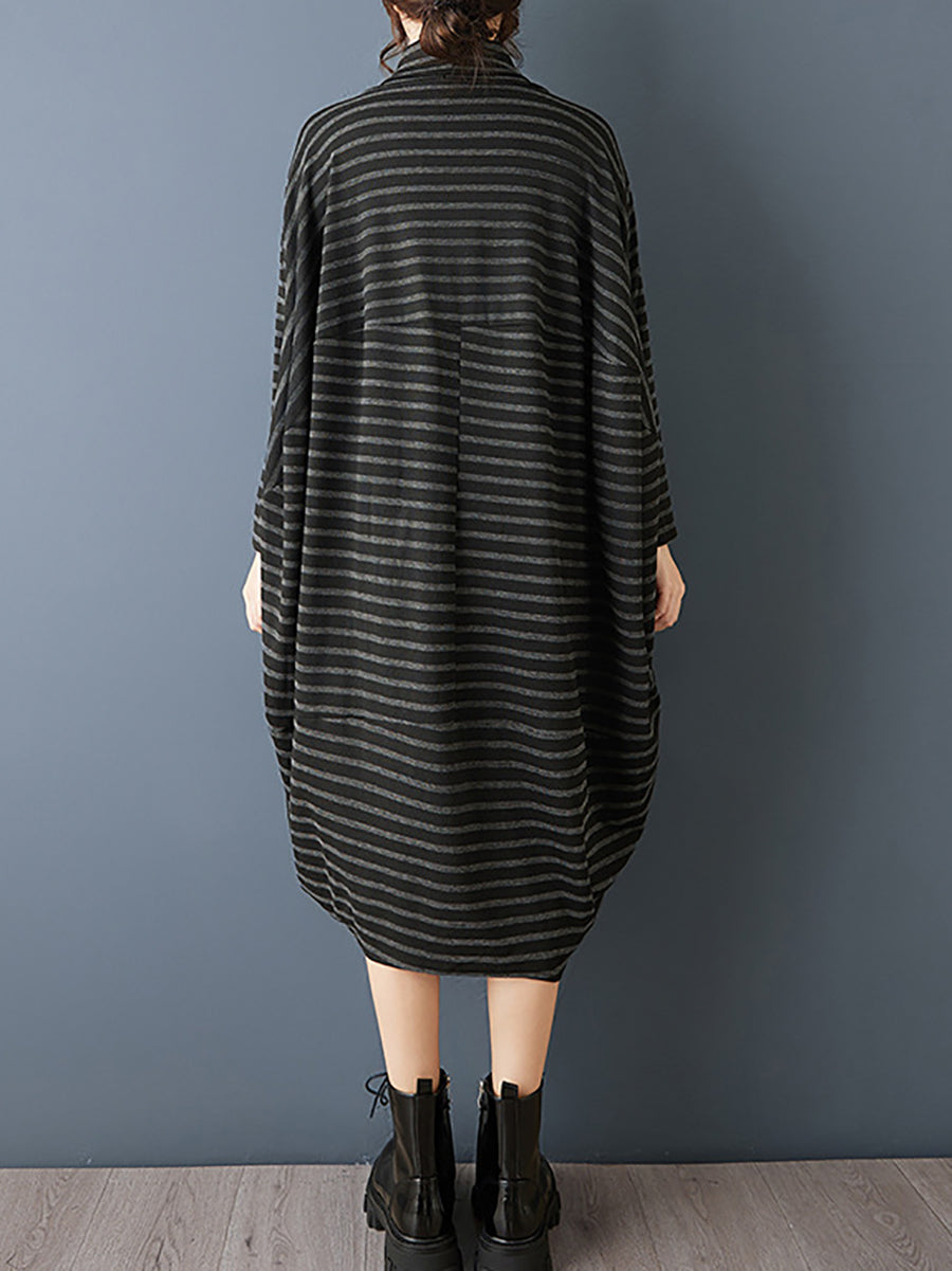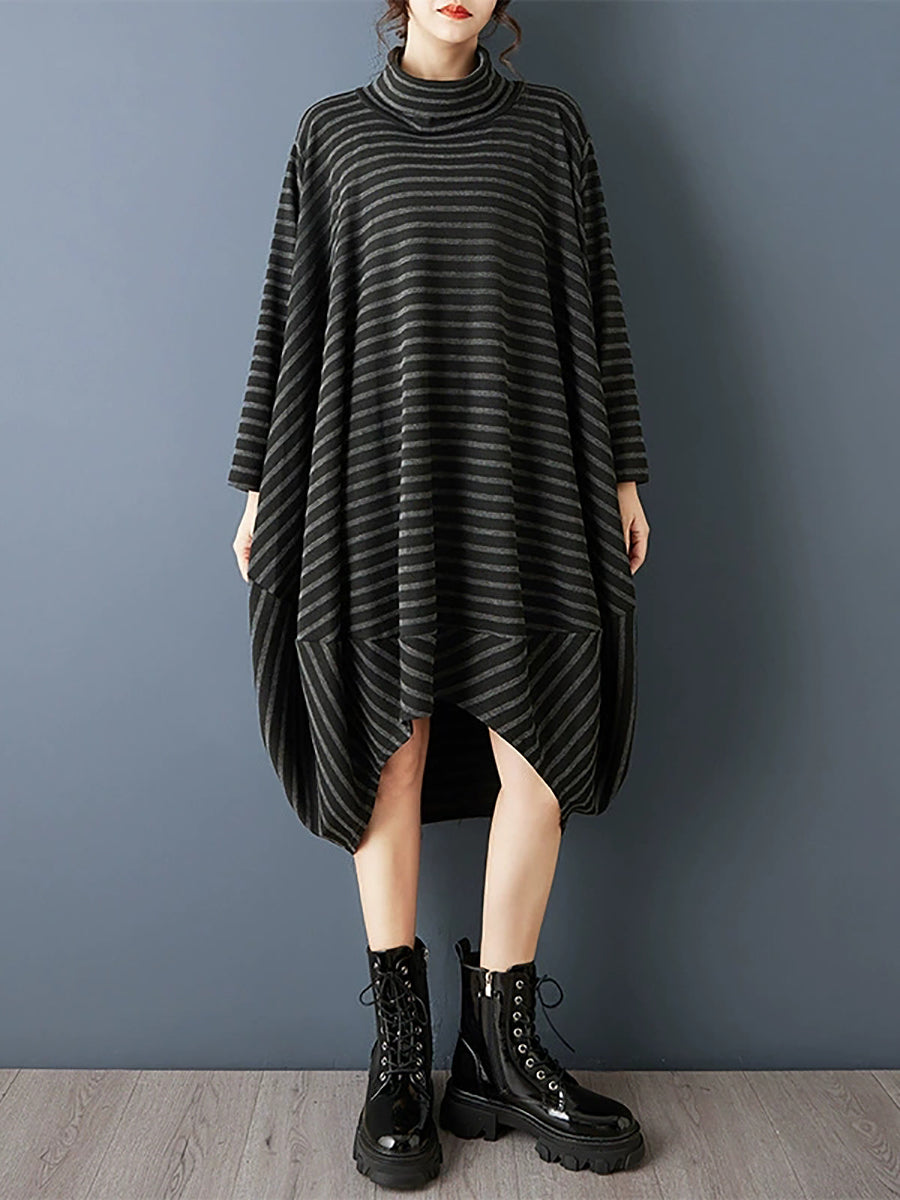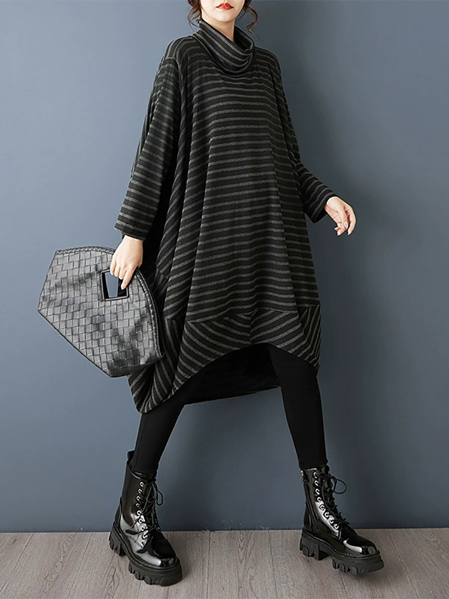 Ženska proljetna umjetnička prugasta haljina s dolčevitom