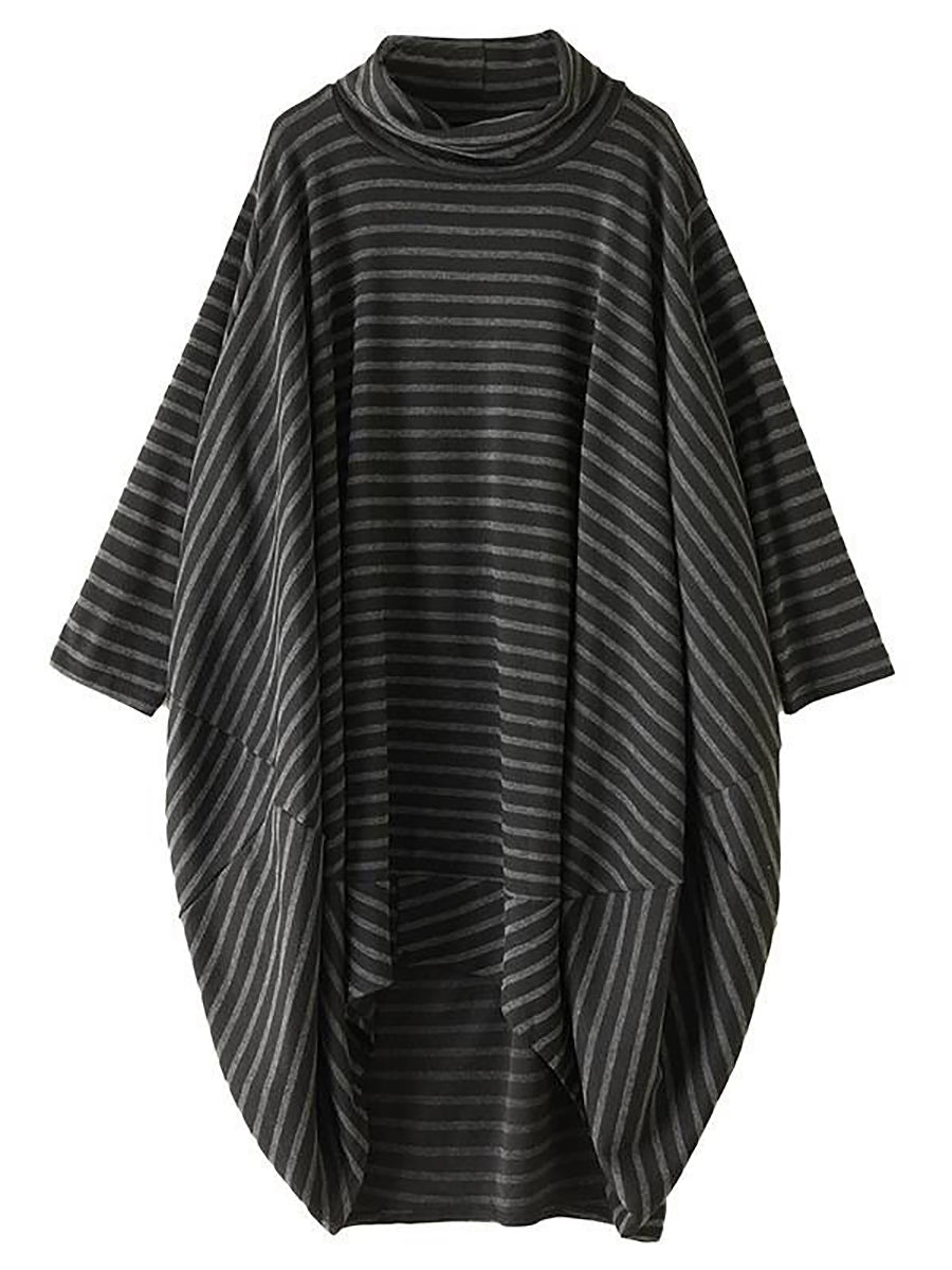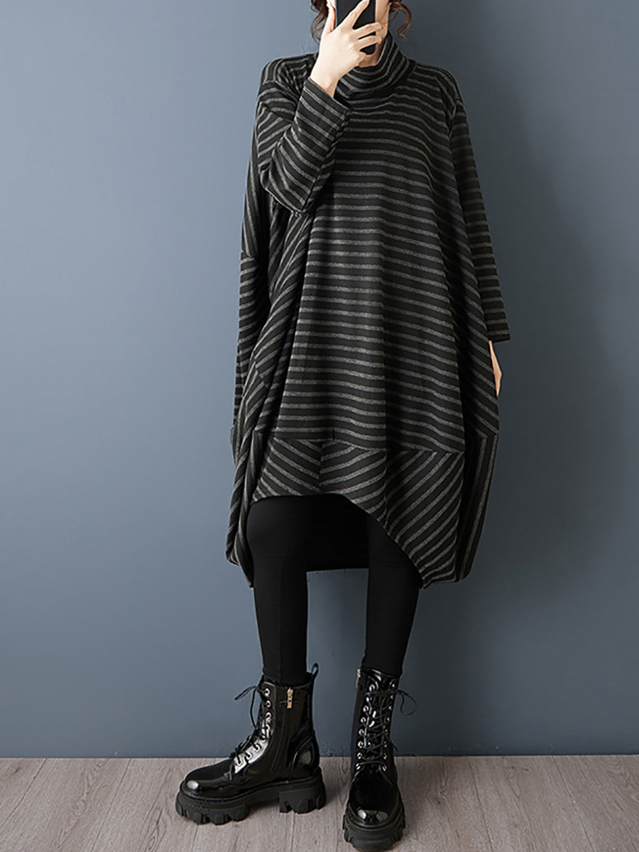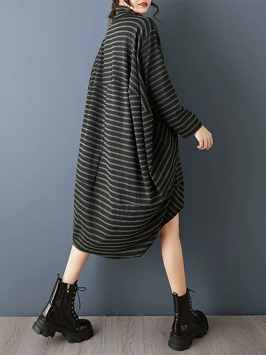 Ženska proljetna umjetnička prugasta haljina s dolčevitom