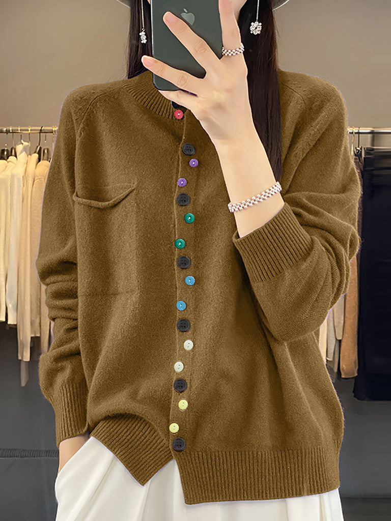 Ženski jesenski vuneni pleteni pulover čiste boje s O-izrezom