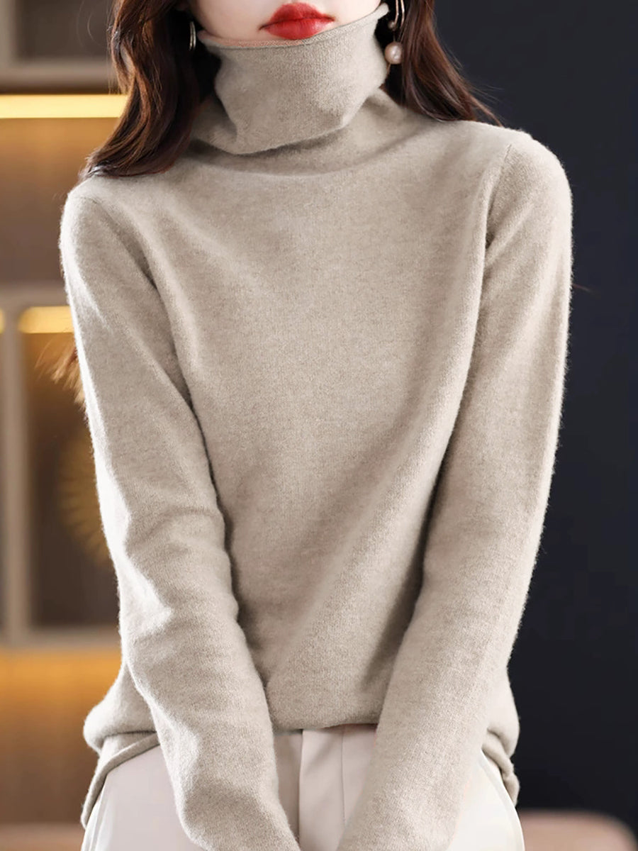 Ženski jesenski ležerni pleteni vuneni pulover s ovratnikom