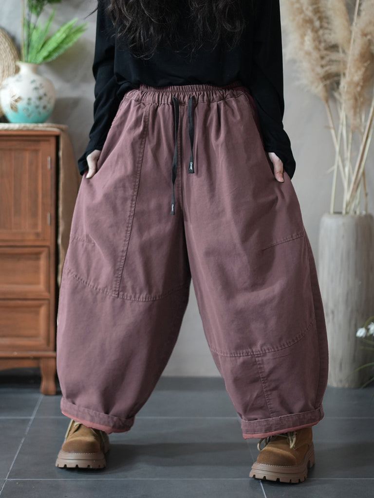 Ženske zimske retro harem hlače od 100% pamuka, čiste boje