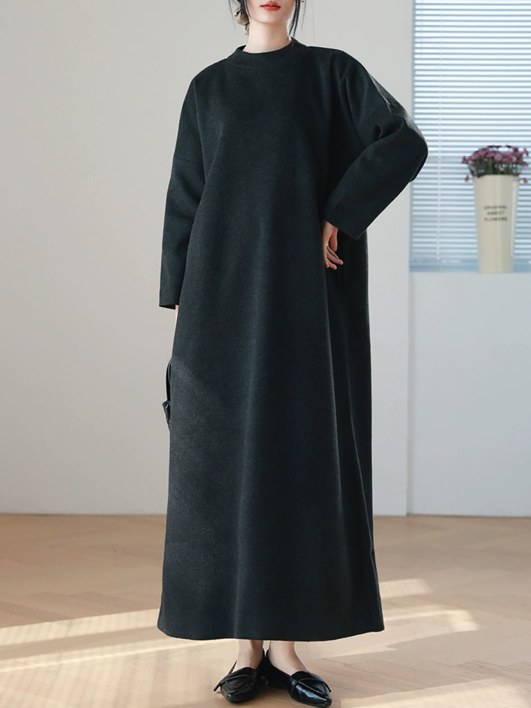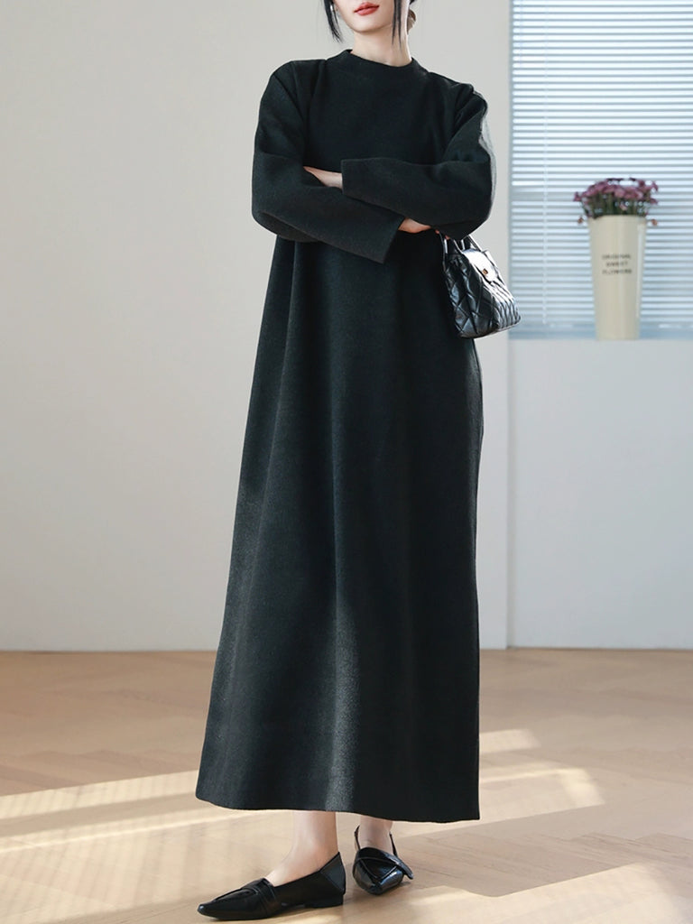 Ženska jesenska duga haljina s O-izrezom u čistim bojama