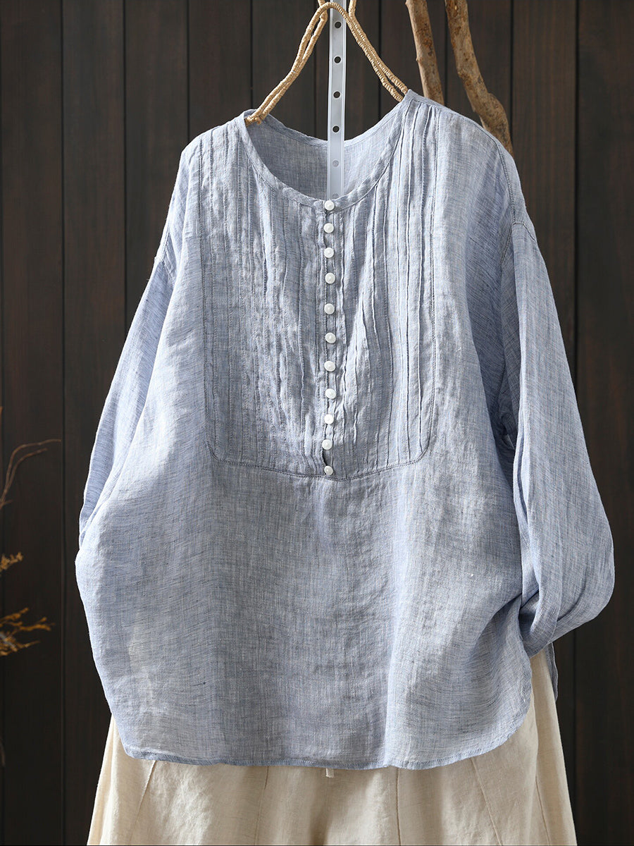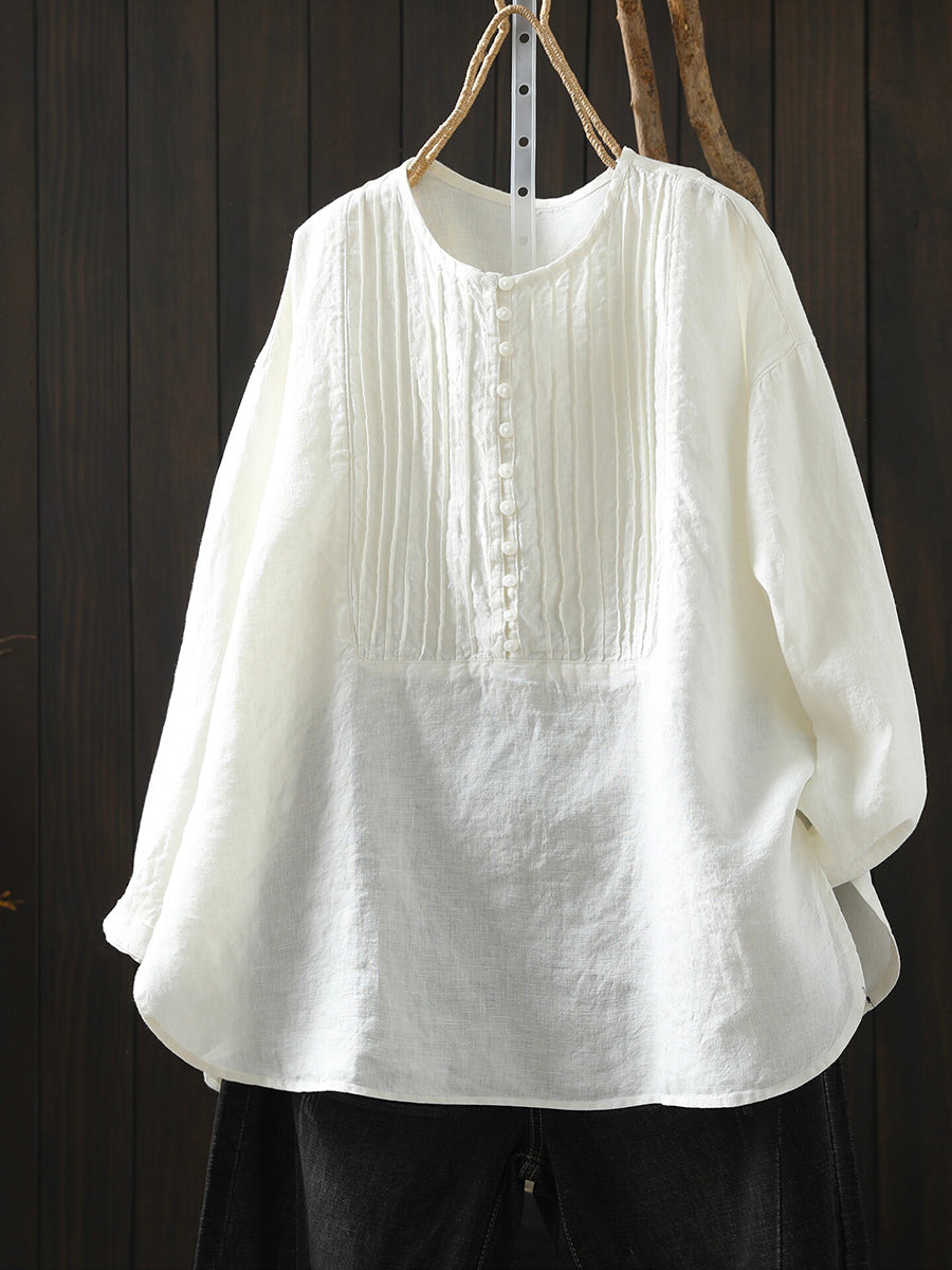 Ženska proljetna umjetnička naborana košulja od 100% lana