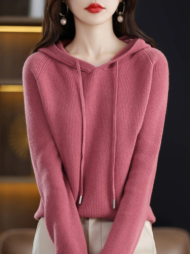 Ženski jesenski ležerni pulover s kapuljačom u čistim bojama