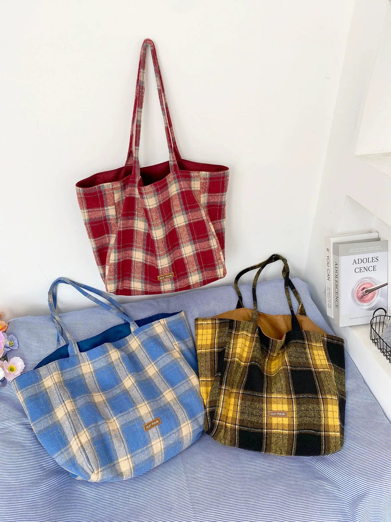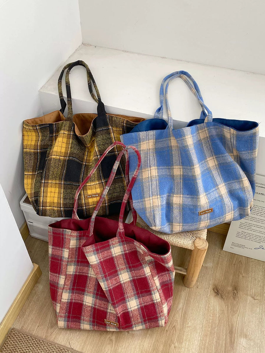 Ženska zimska umjetnička karirana platnena torba preko ramena