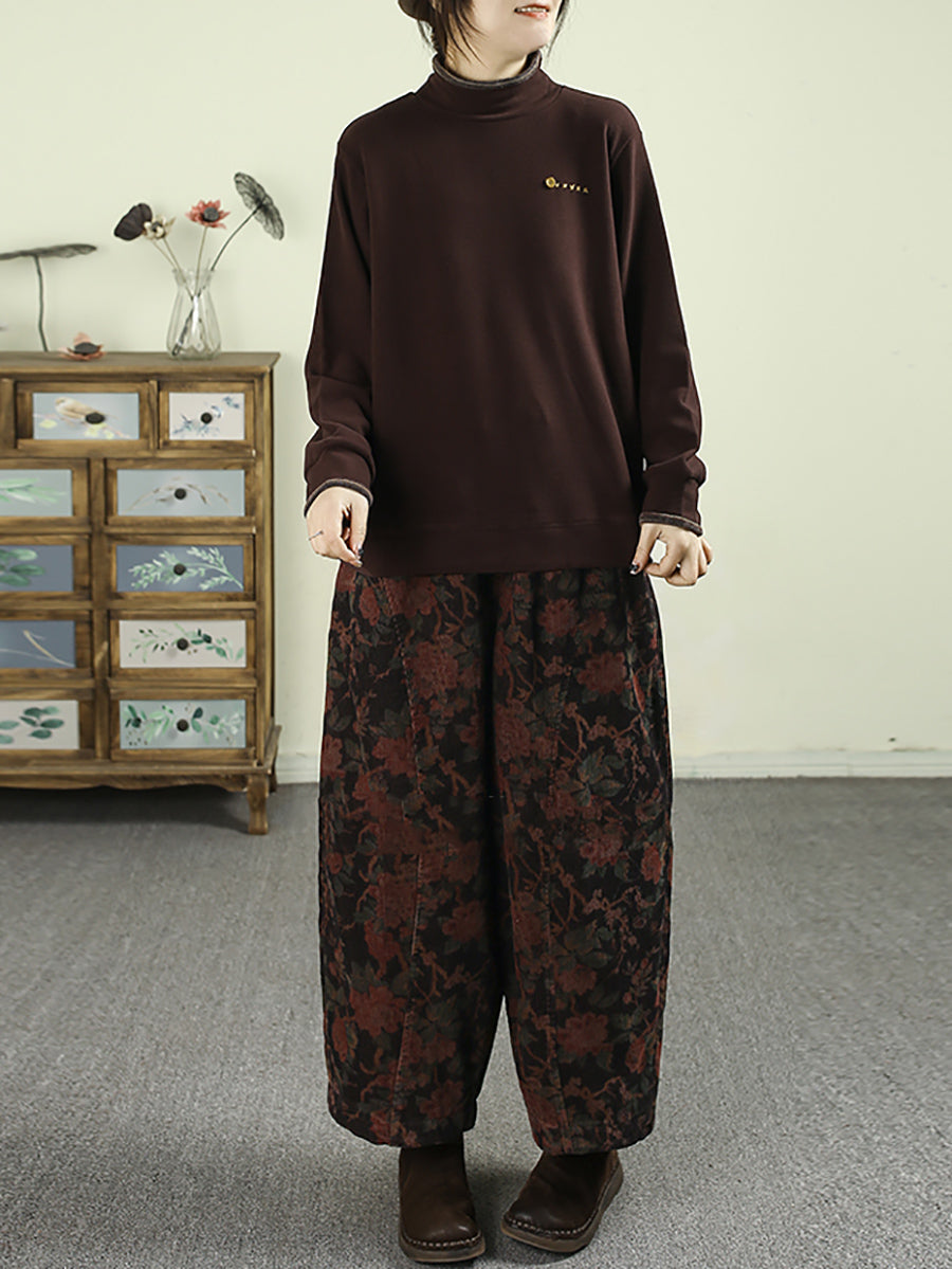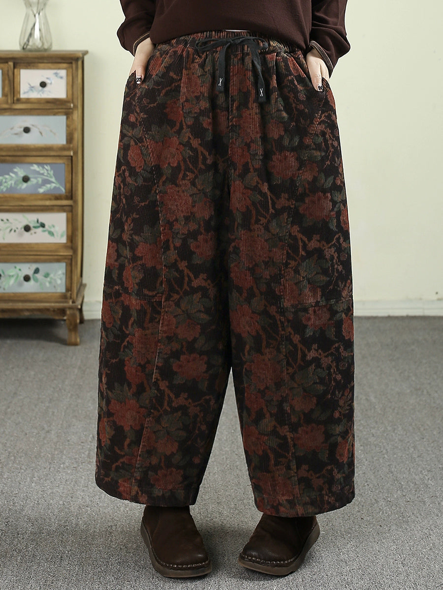 Ženske zimske hlače širokih nogavica s cvjetnim kordurom