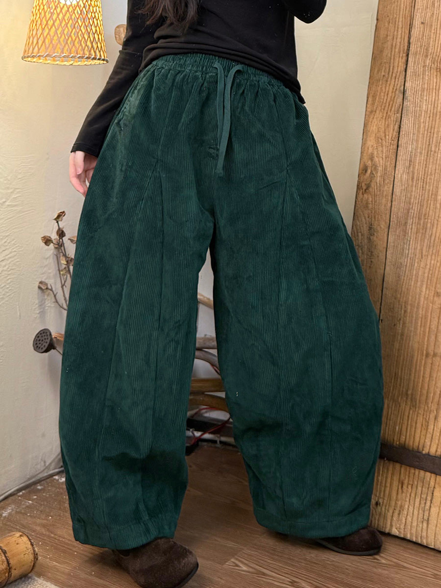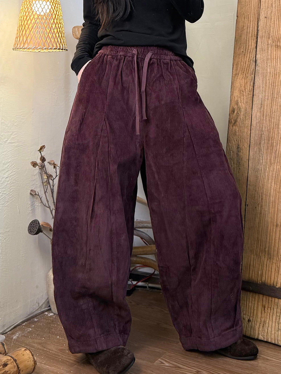 Ženske ležerne zimske harem hlače od korduroja s flis podstavom