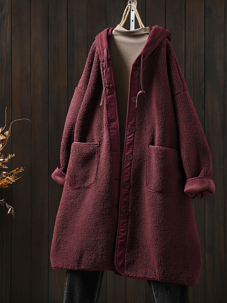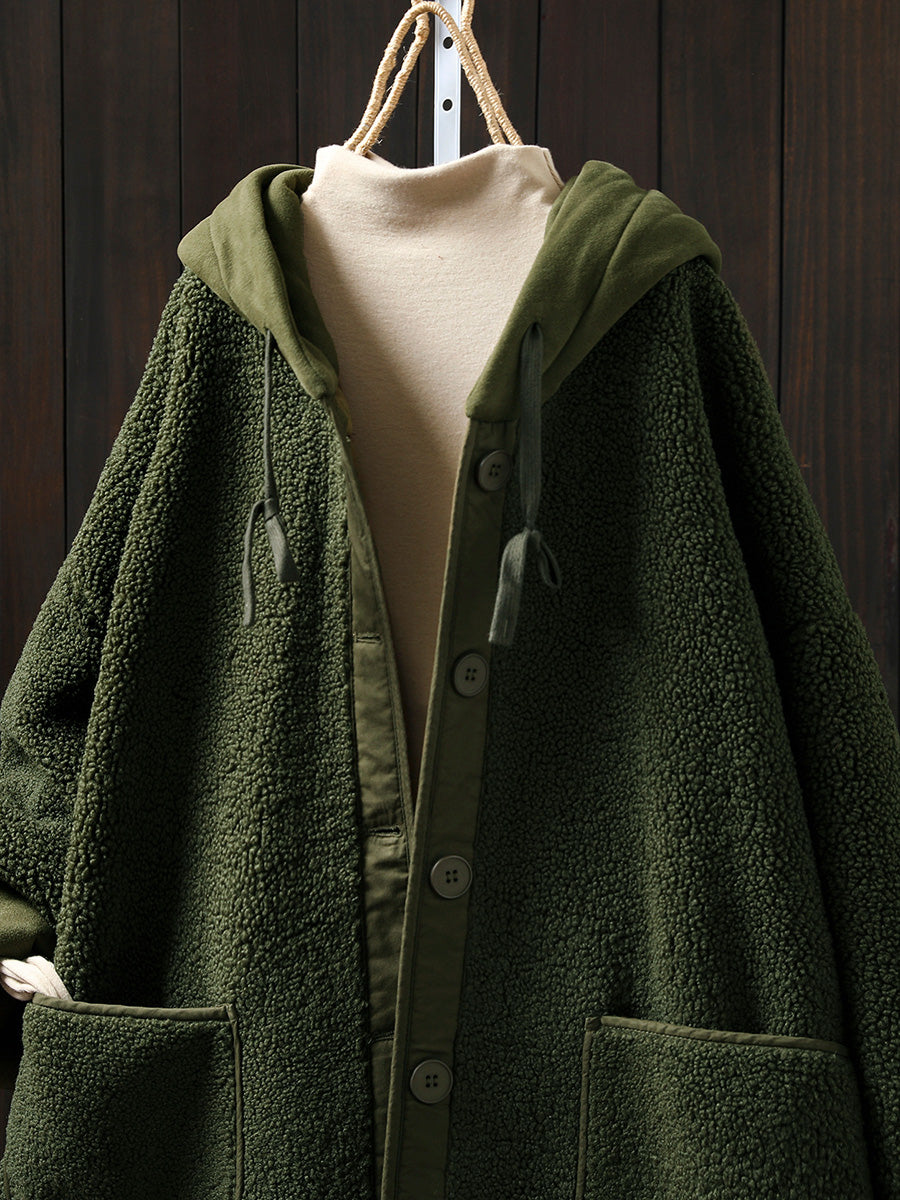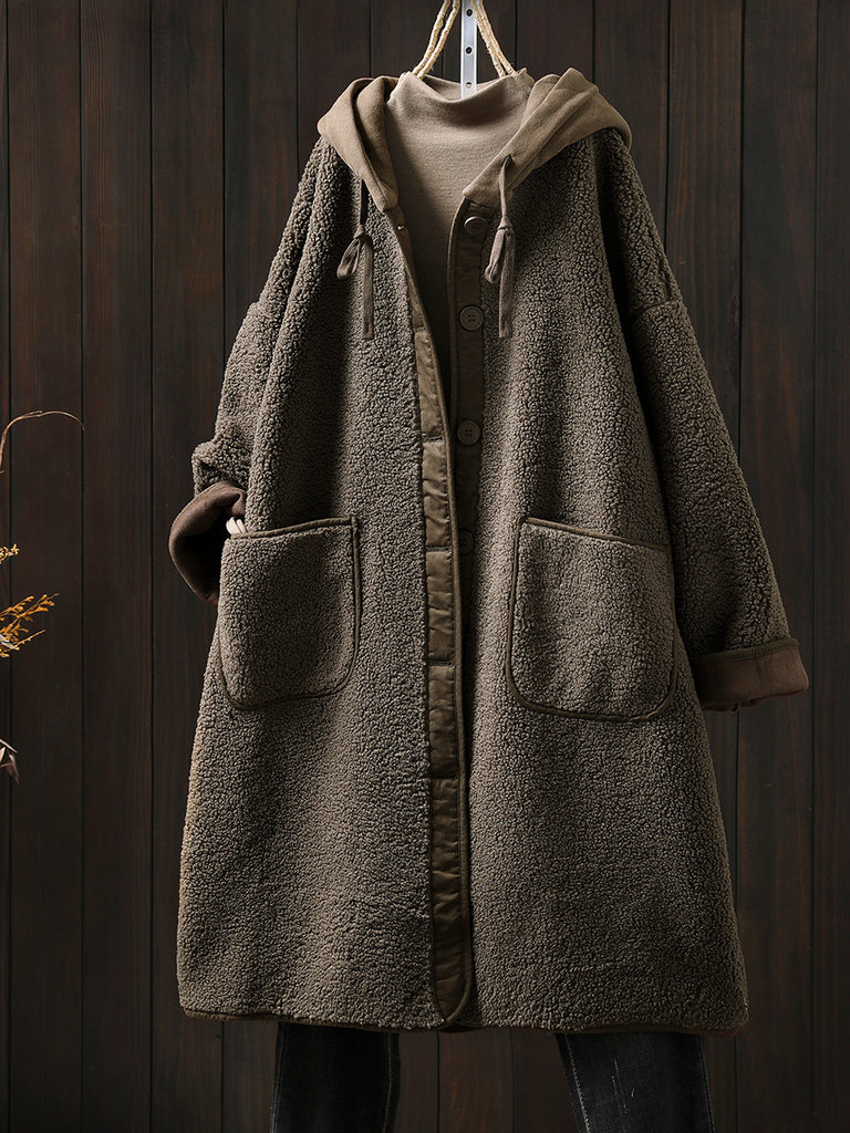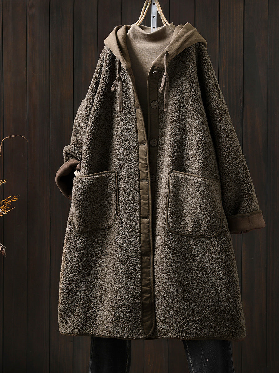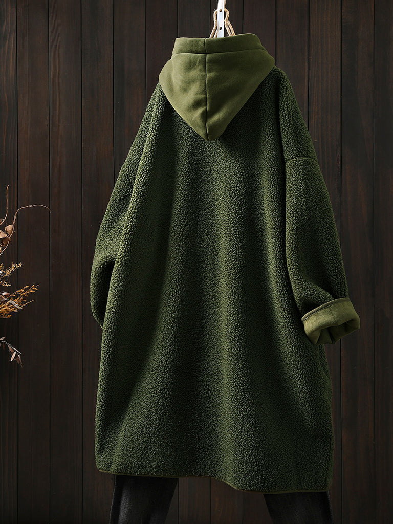 Ovaj ženski kaput ima jednobojni dizajn s kapuljačom i raglan rukavima pune duljine. Njegov retro stil čini ga idealnim za jesensku i zimsku sezonu, pružajući toplinu i udobnost tijekom hladnijih mjeseci.