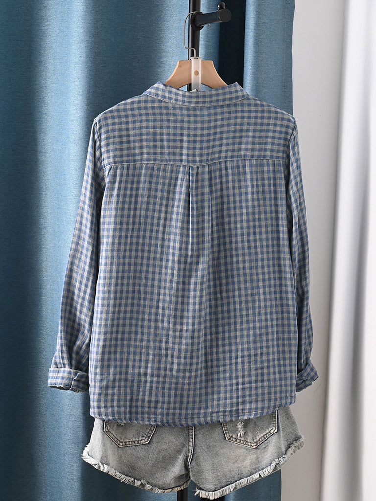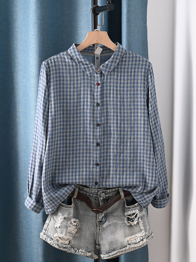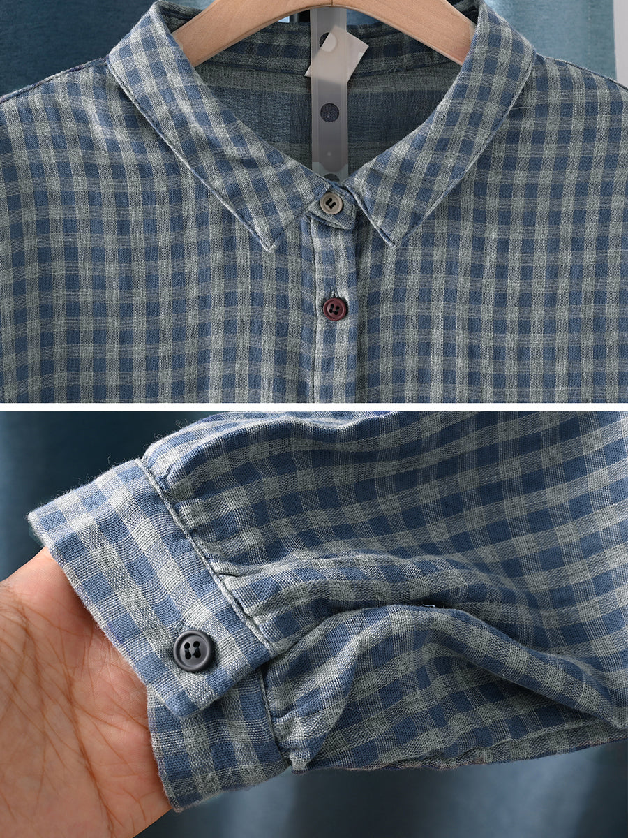 Ženska jesenska karirana košulja s odloženim ovratnikom od 100% pamuka