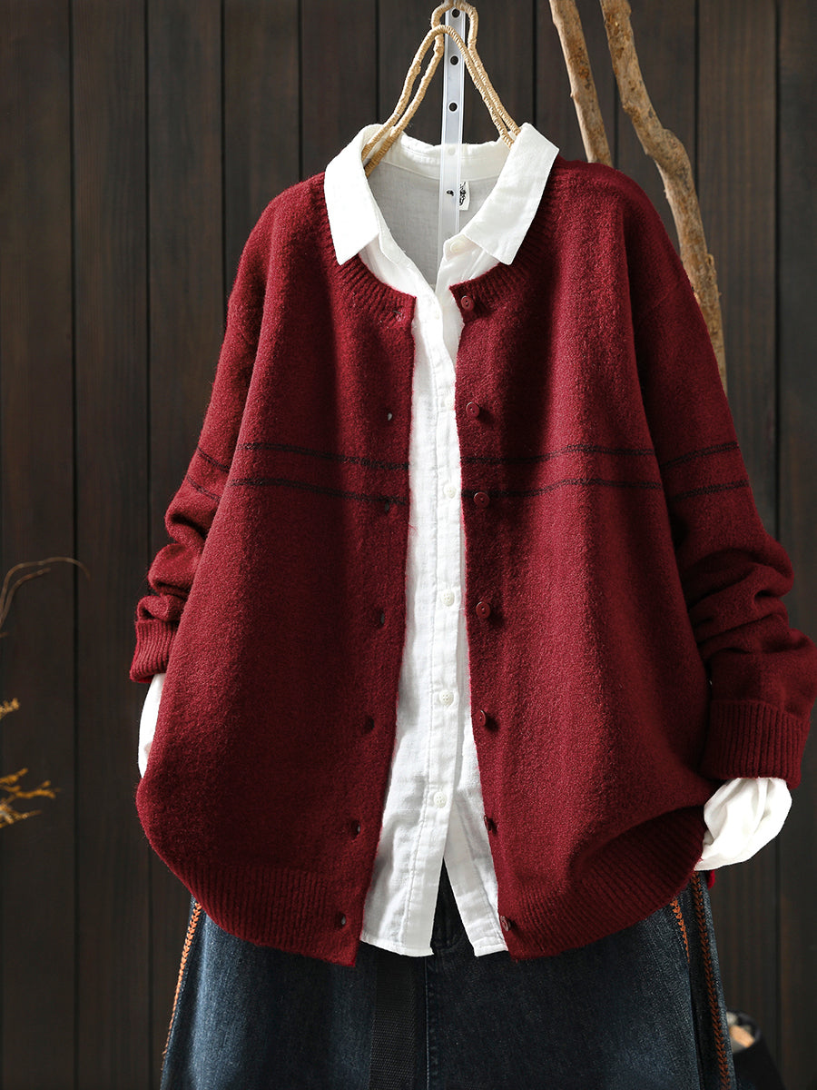 Ženski jesenski umjetnički prugasti pleteni džemper s O-izrezom