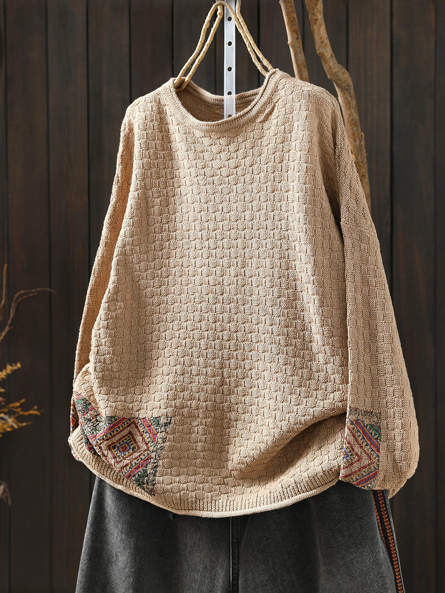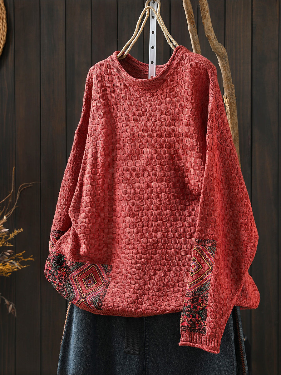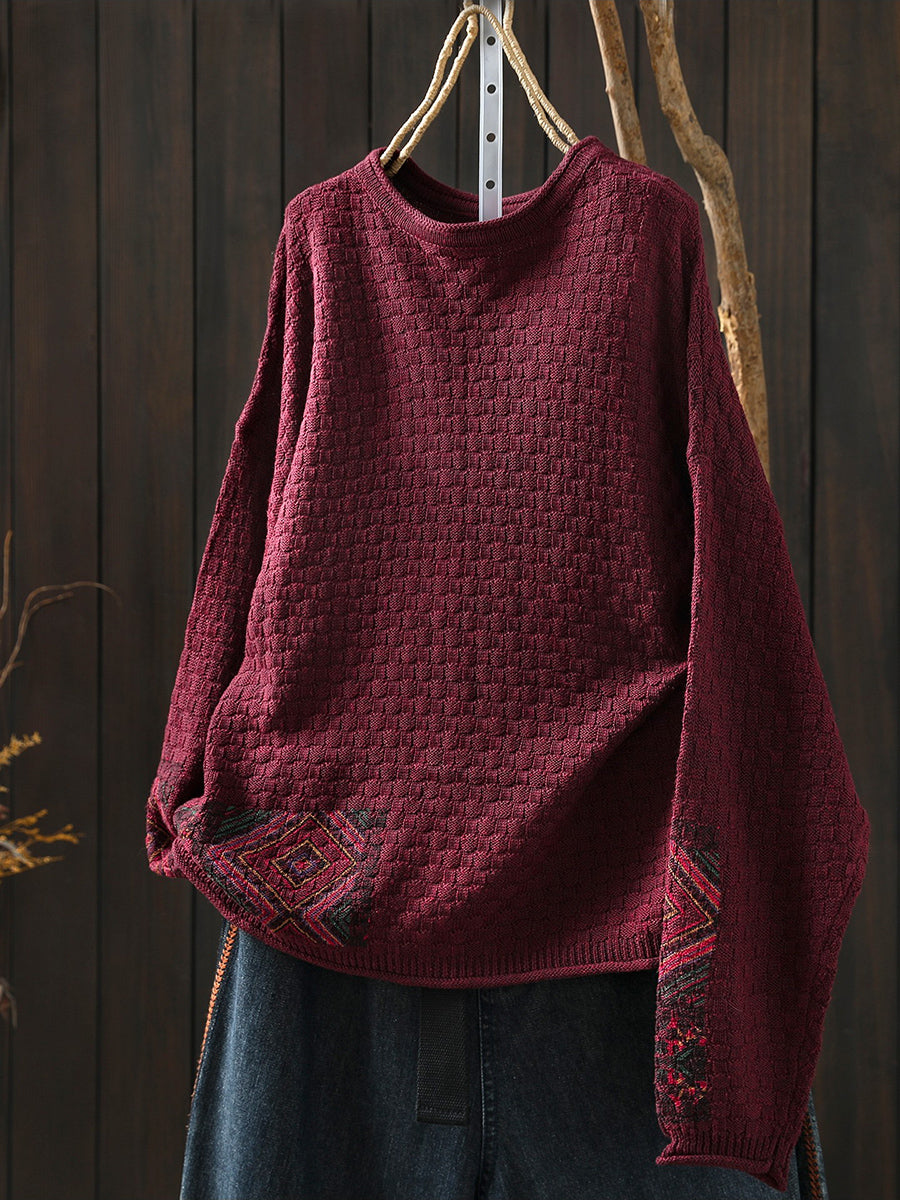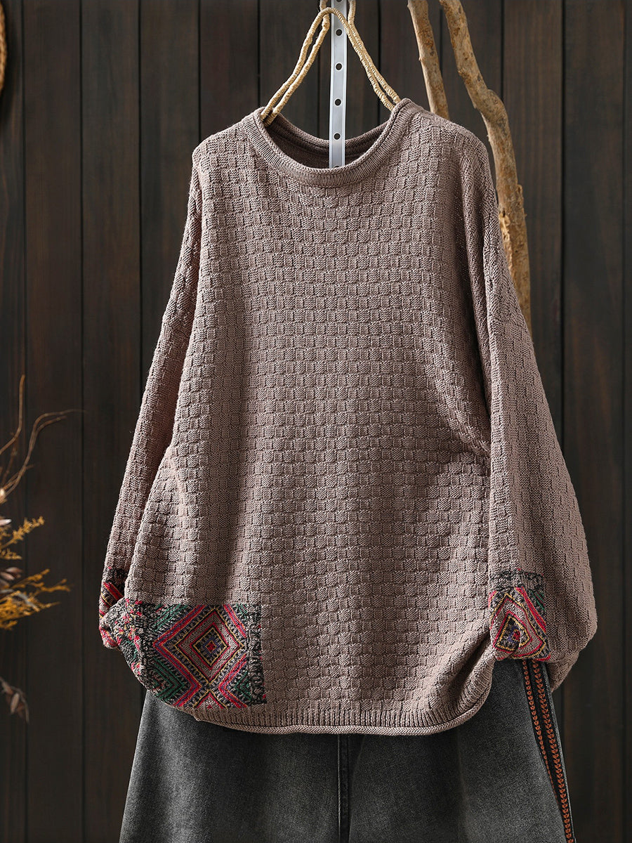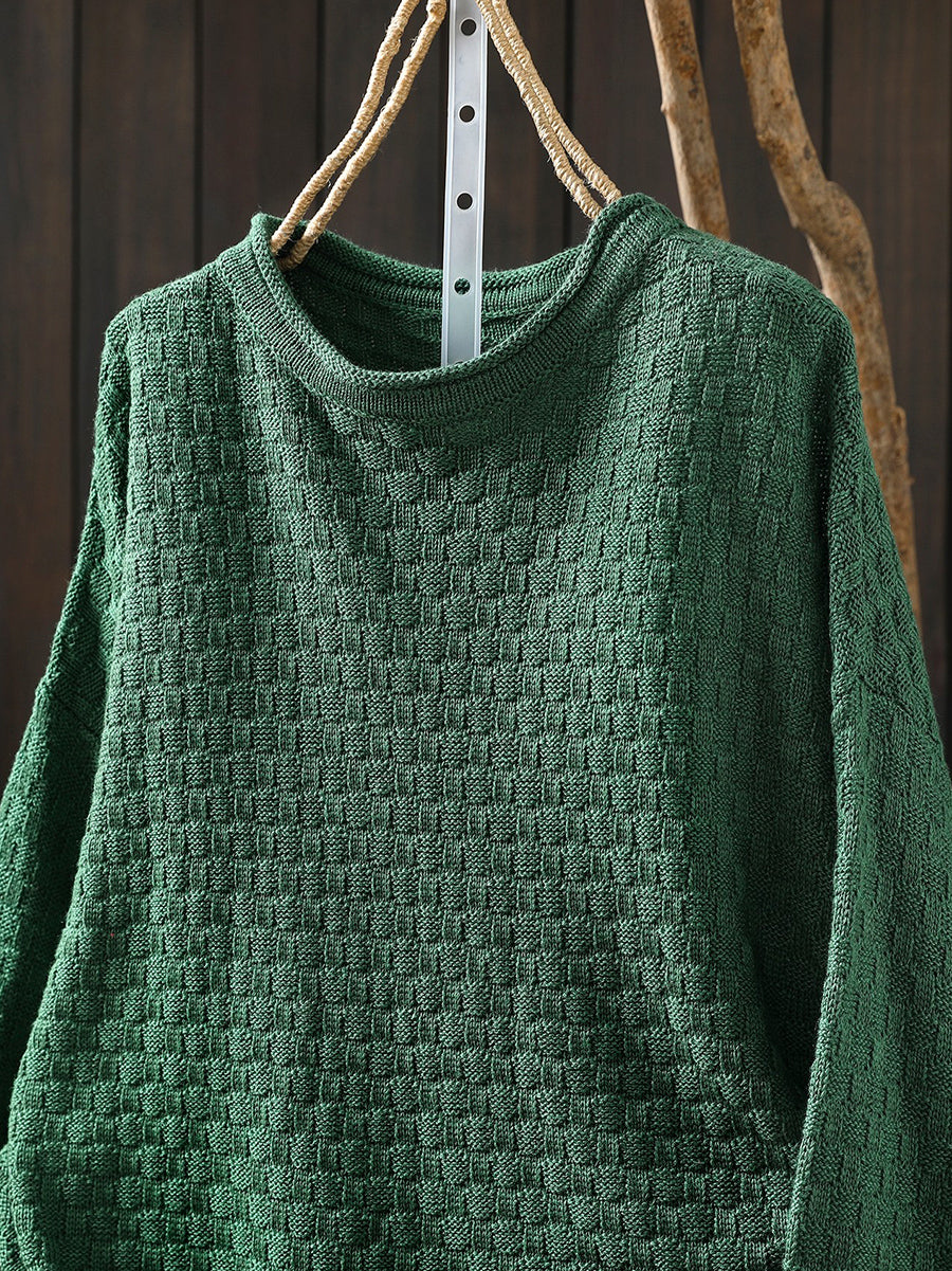 Ženski jesenski vintage pleteni džemper s O-izrezom