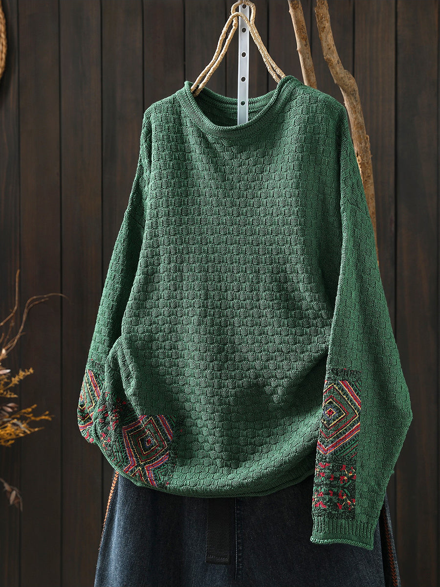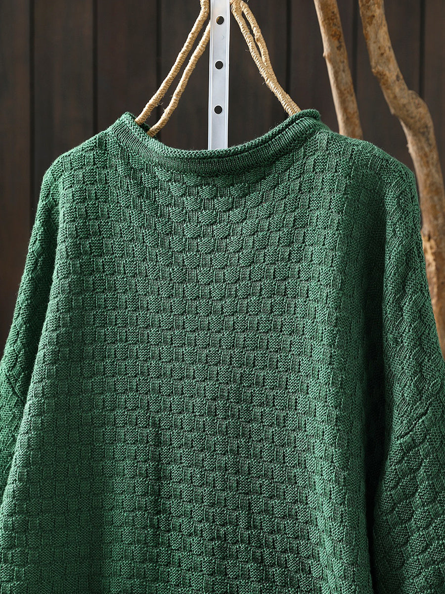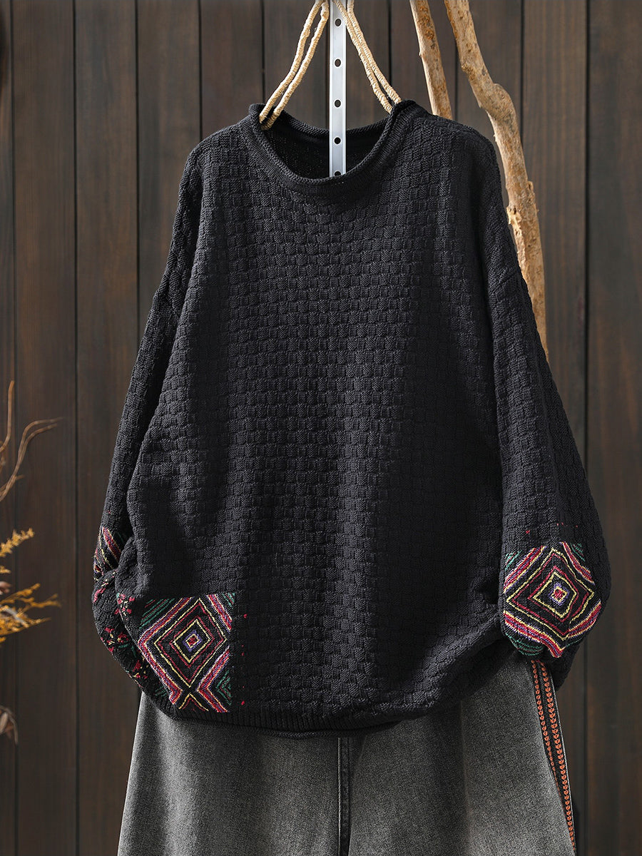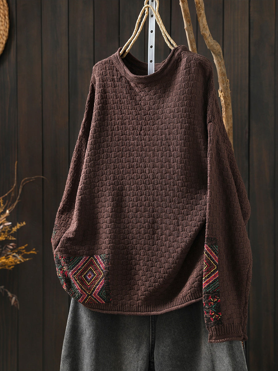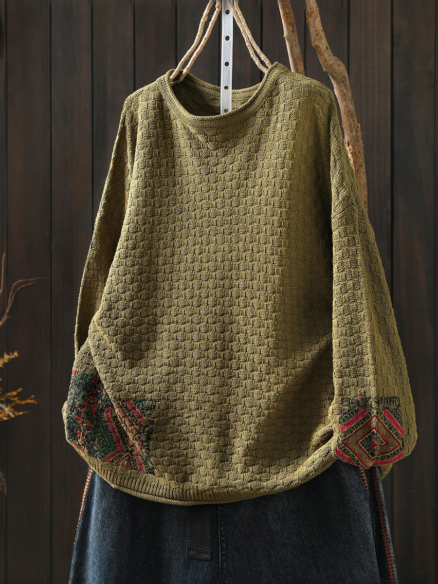 Ženski jesenski vintage pleteni džemper s O-izrezom