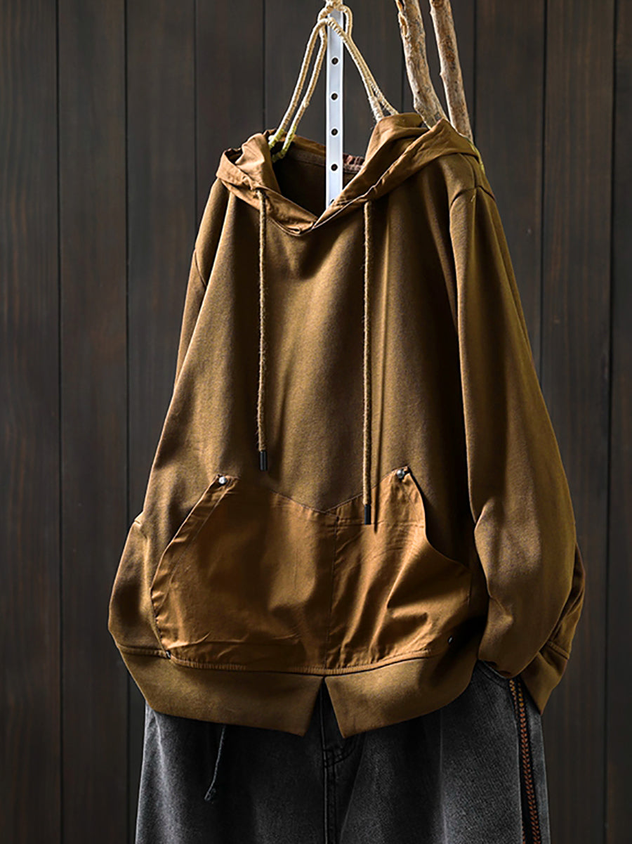 Ženska retro jesenska majica s kapuljačom od 100% pamuka, čiste boje