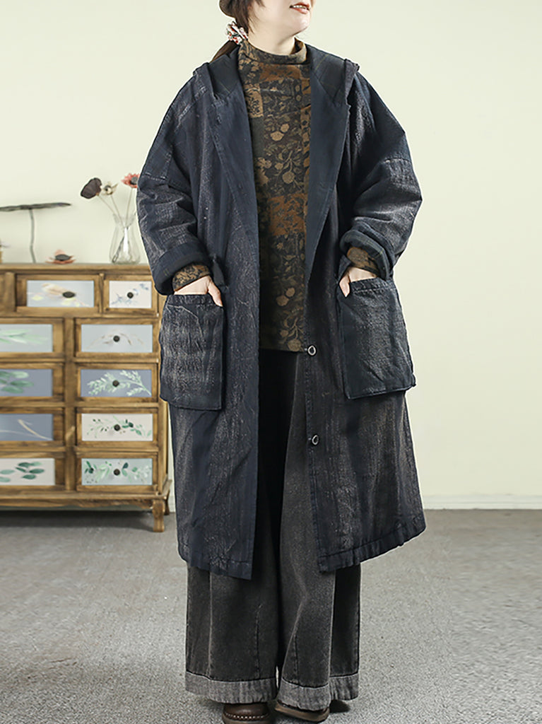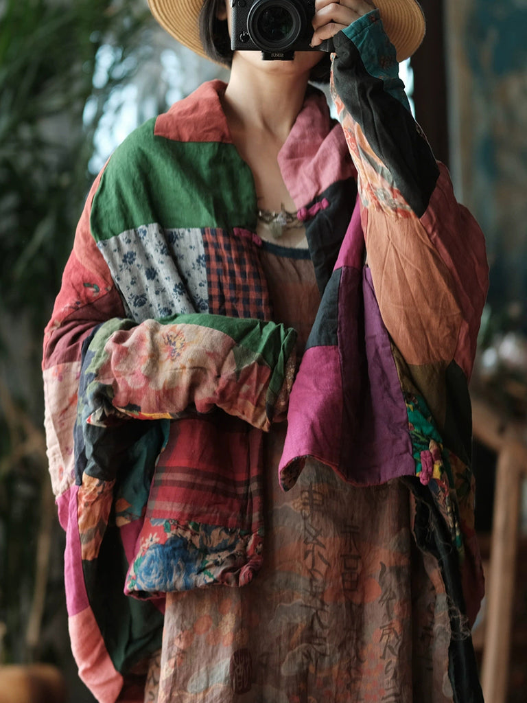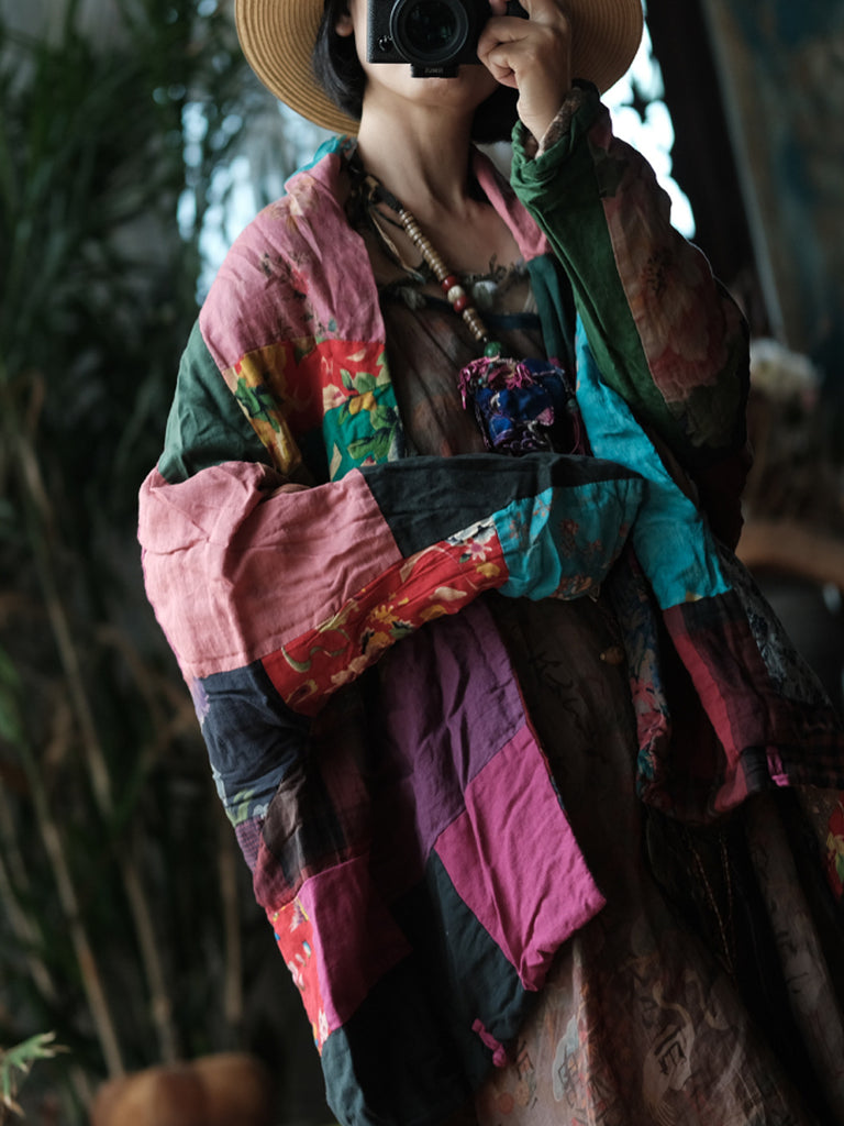 Ženski vintage pamučni kaput s pamučnim rukavima i pamučnim patchworkom