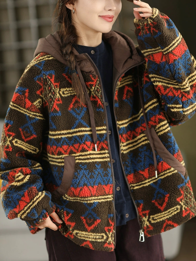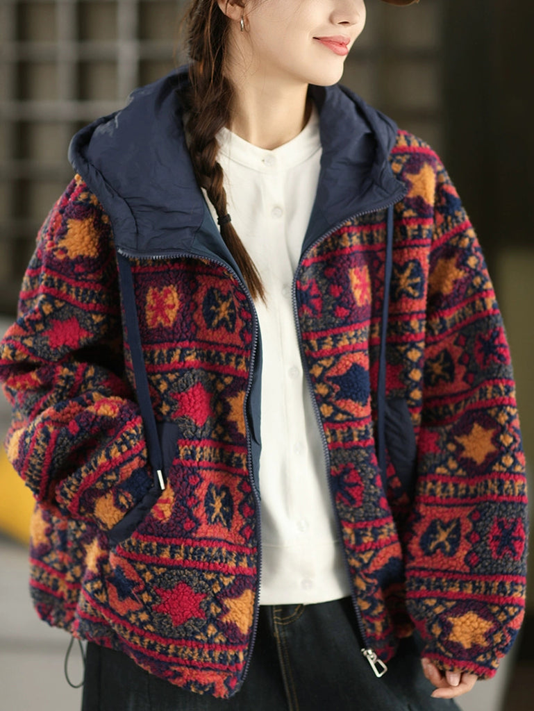 Ženska vintage zimska jakna s O-izrezom i flis podstavom