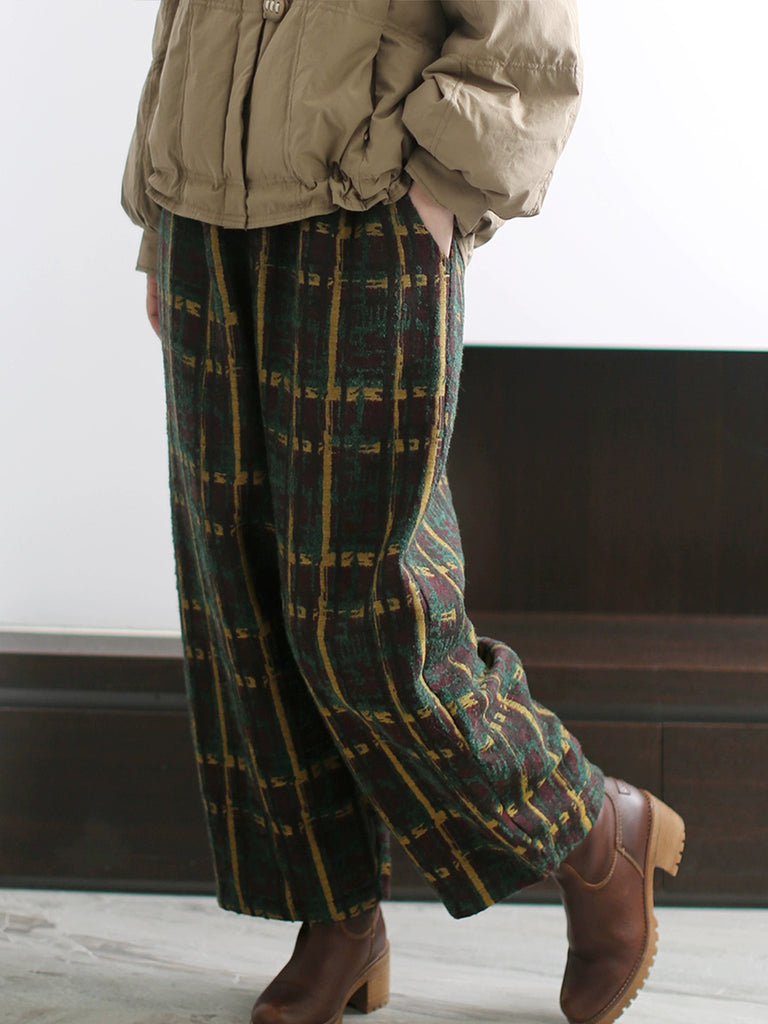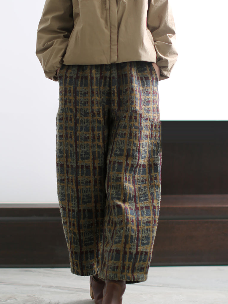 Ženske zimske vintage karirane žakard vunene harem hlače