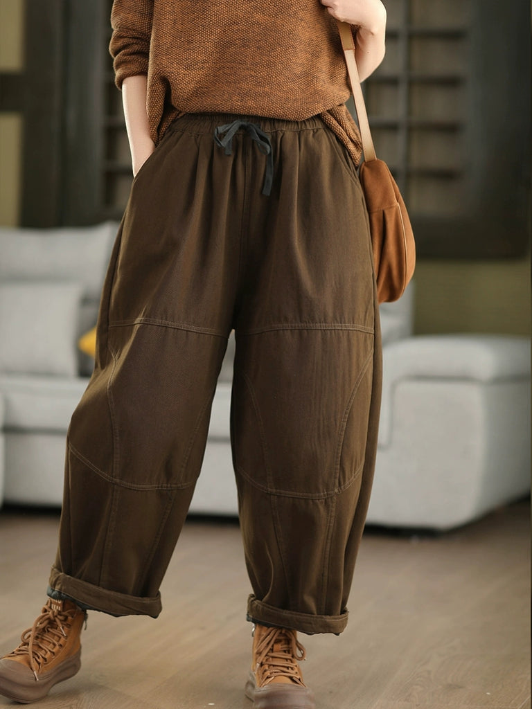 Ženske vintage zimske harem hlače s flis podstavom od 100% pamuka