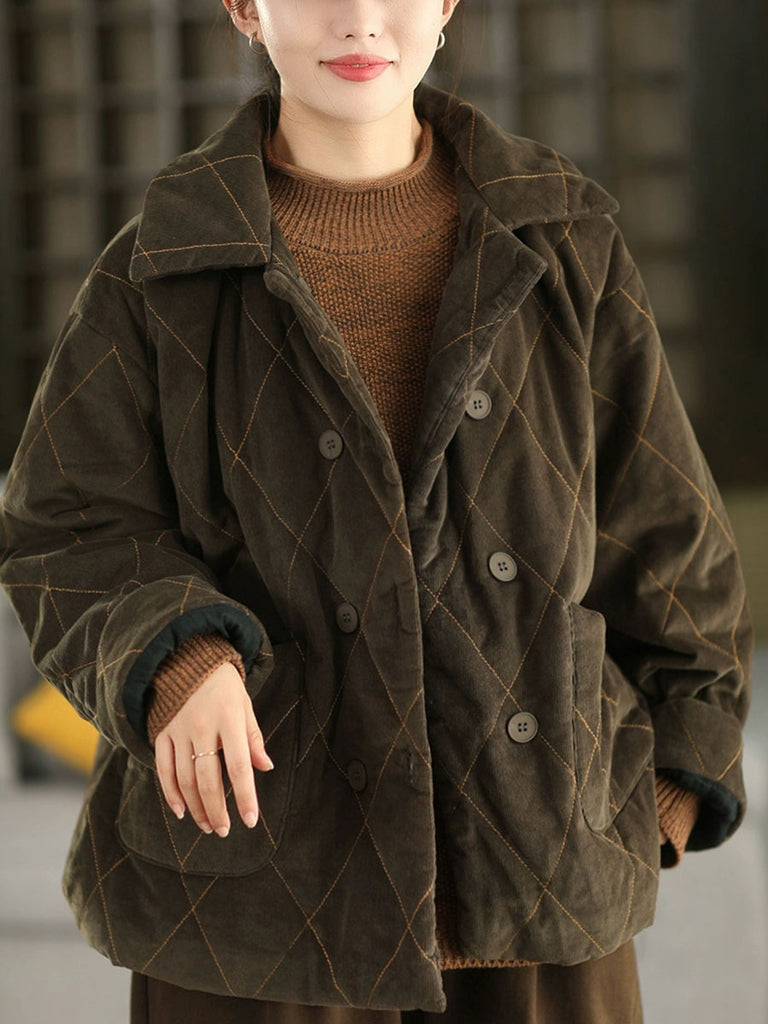 Ženska vintage romboidna podstavljena jakna s odloženim ovratnikom