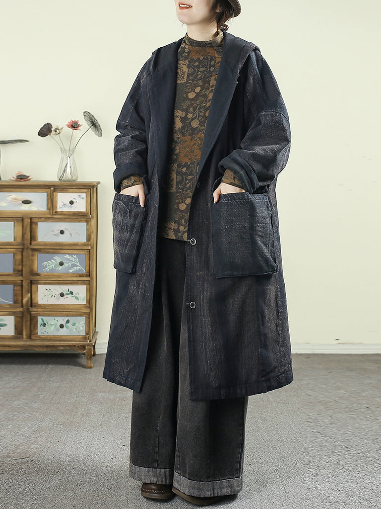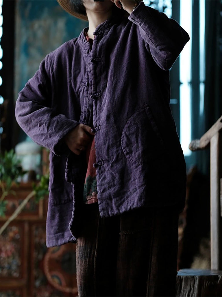 Ženski vintage jesenski kaput od pamuka i lana u čistoj boji