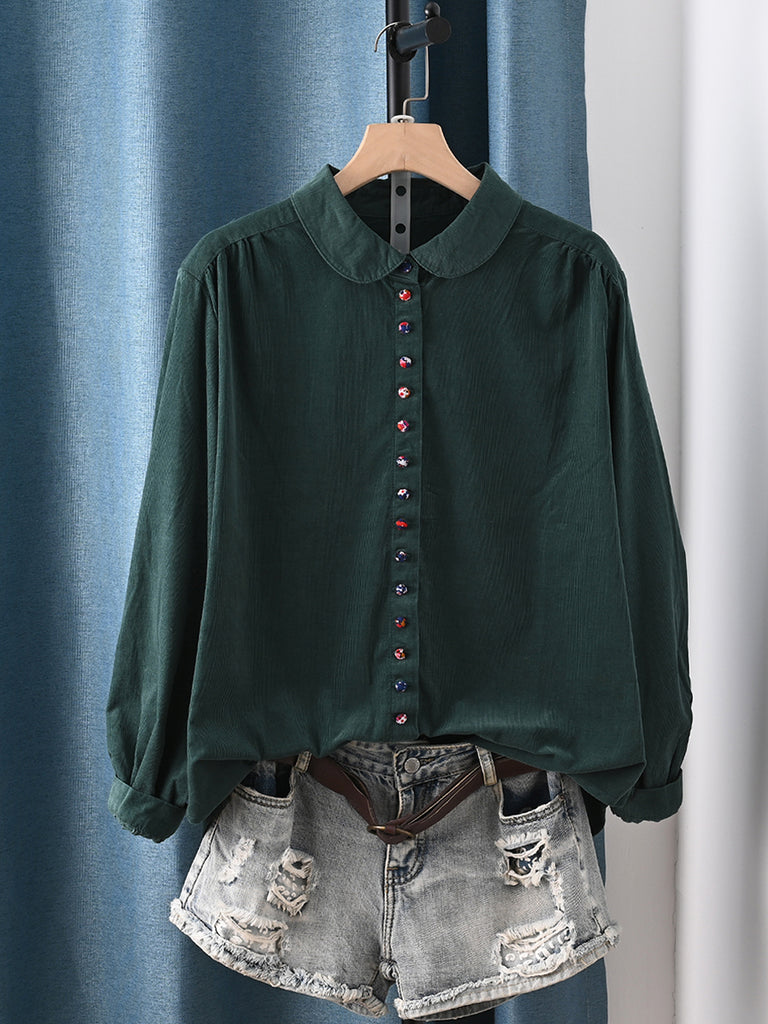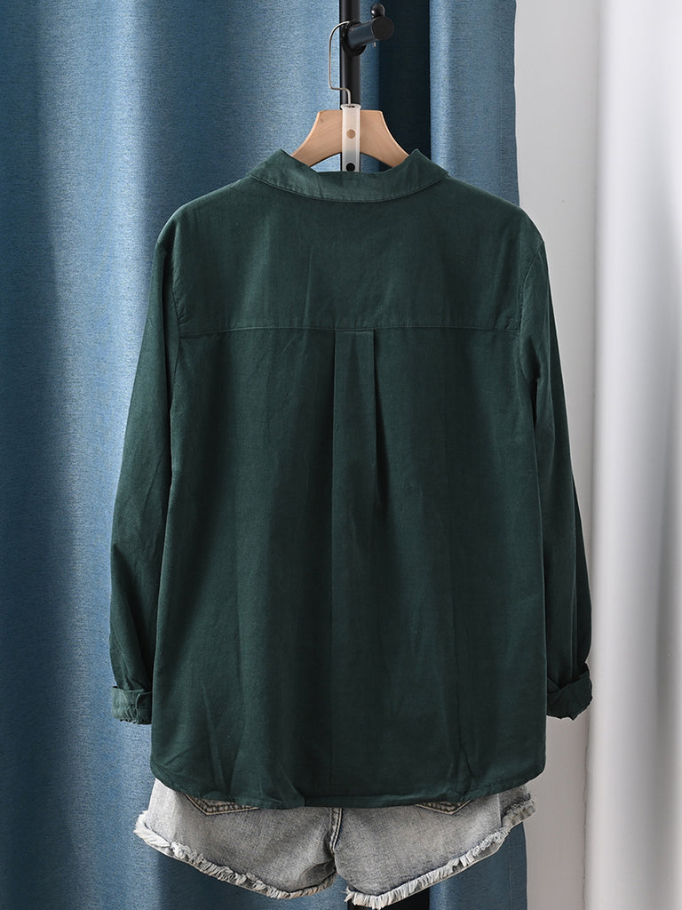 Women Artsy 100%Cotton Pure Color Turn-down Collar Shirt