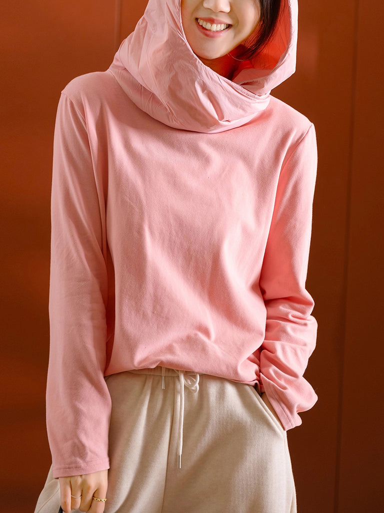 Women Winter Artsy Pure Color Half-Turtleneck 100%Cotton Blouse