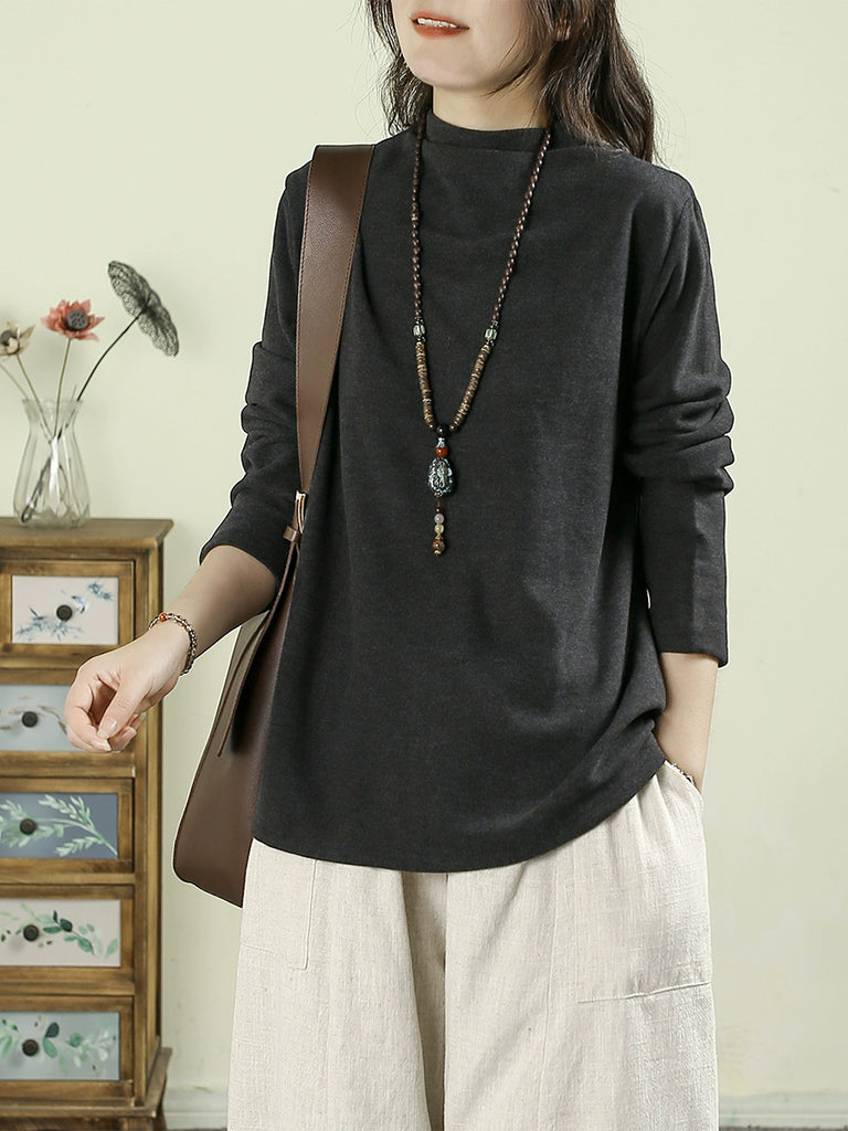 Women Autumn Casual Pure Color Half-Turtleneck Blouse