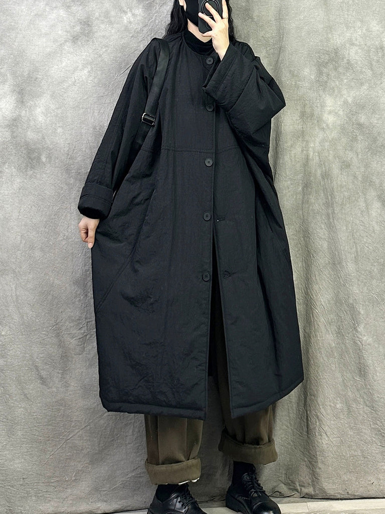 Women Autumn Retro Pure Color Padded Trench Coat