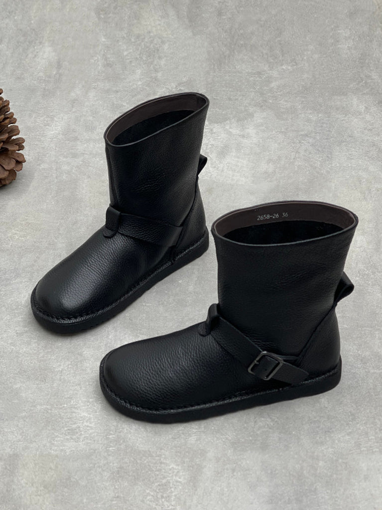 Women Vintage Genuine Leather Pure Color Martin Boots