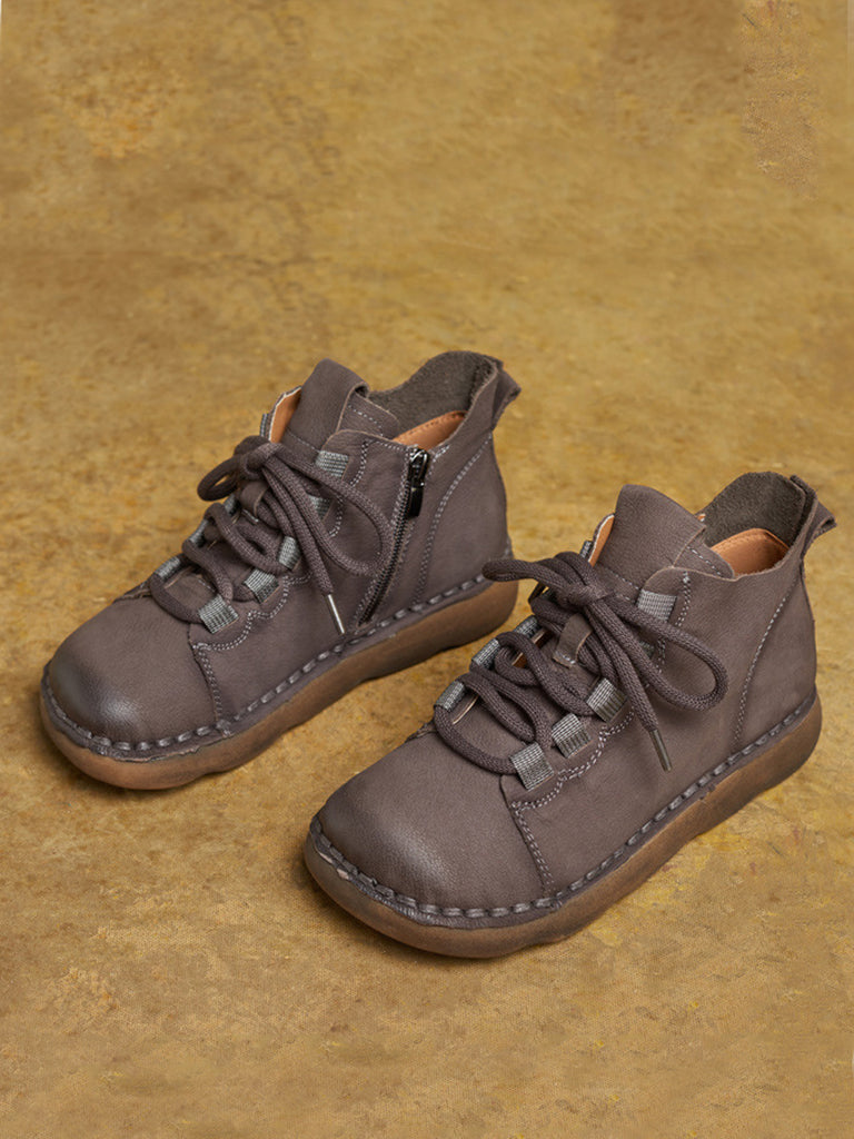 Women Vintage Pure Color Genuine Leather Ankle Boots