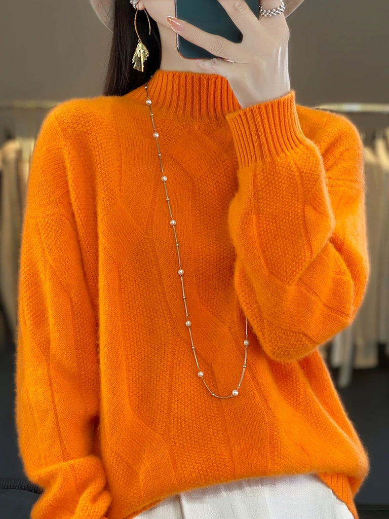 Women Autumn Pure Color Wool Half-Turtleneck Knitted Sweater