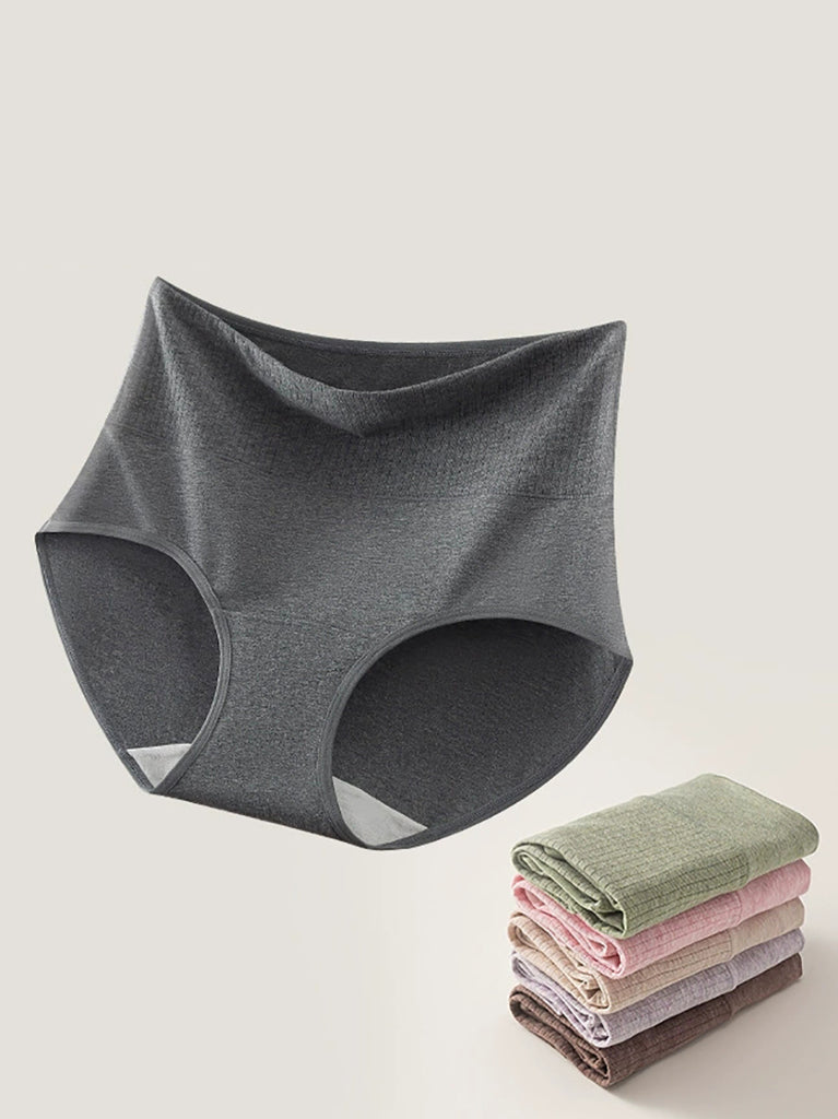 6 Pieces Women Winter Pure Color High Waist Underwear