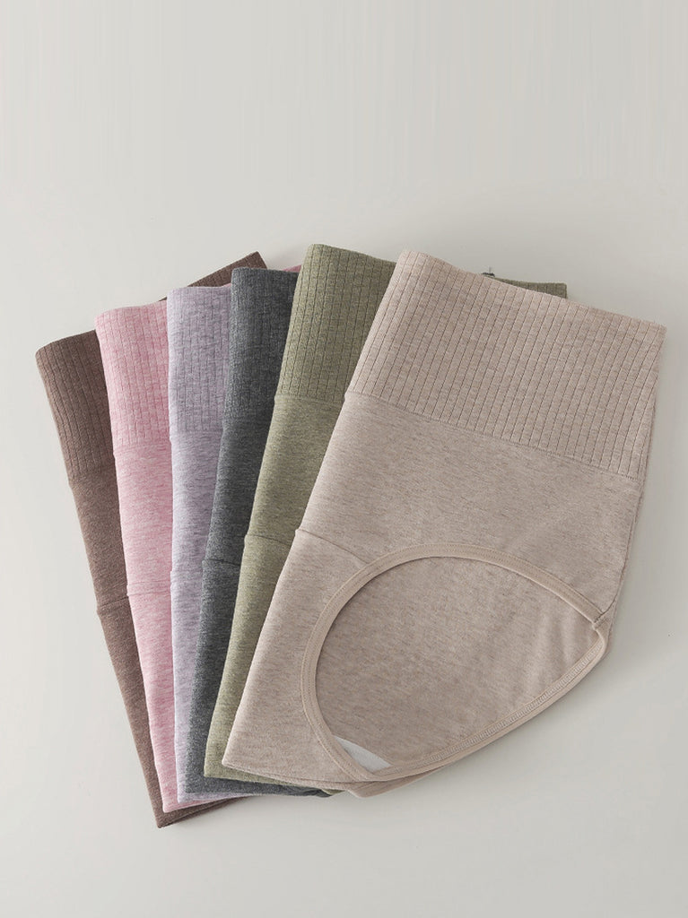 6 Pieces Women Winter Pure Color High Waist Underwear