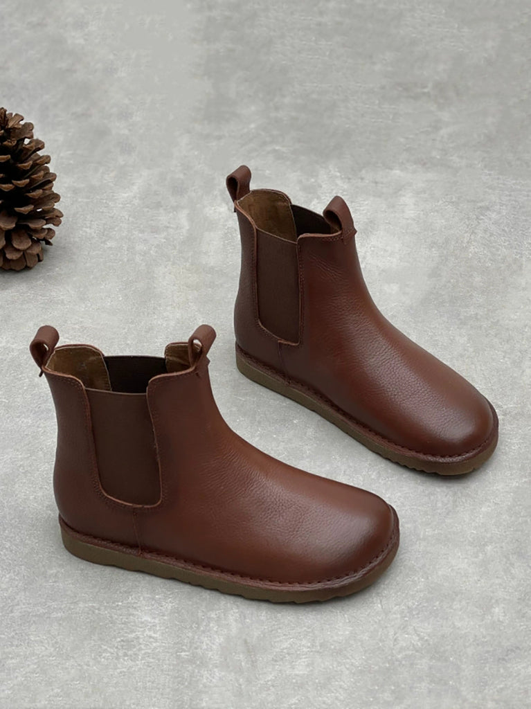 Women Vintage Winter Genuine Leather Chelsea Boots
