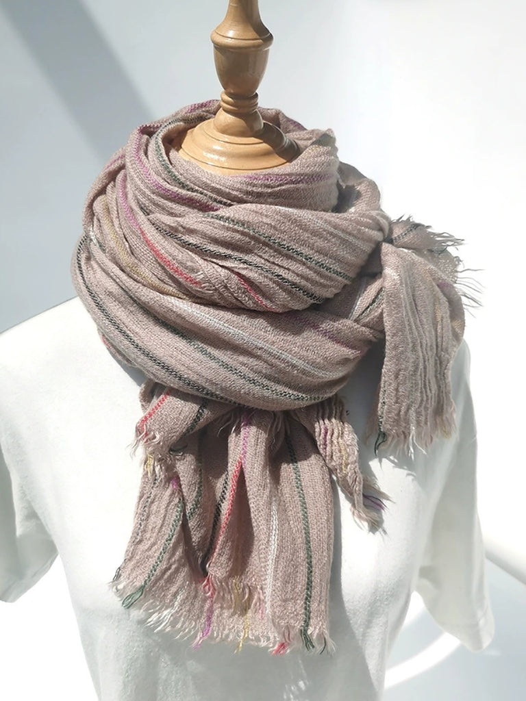 Women Winter Vintage Stripe Warm Shawl Scarf