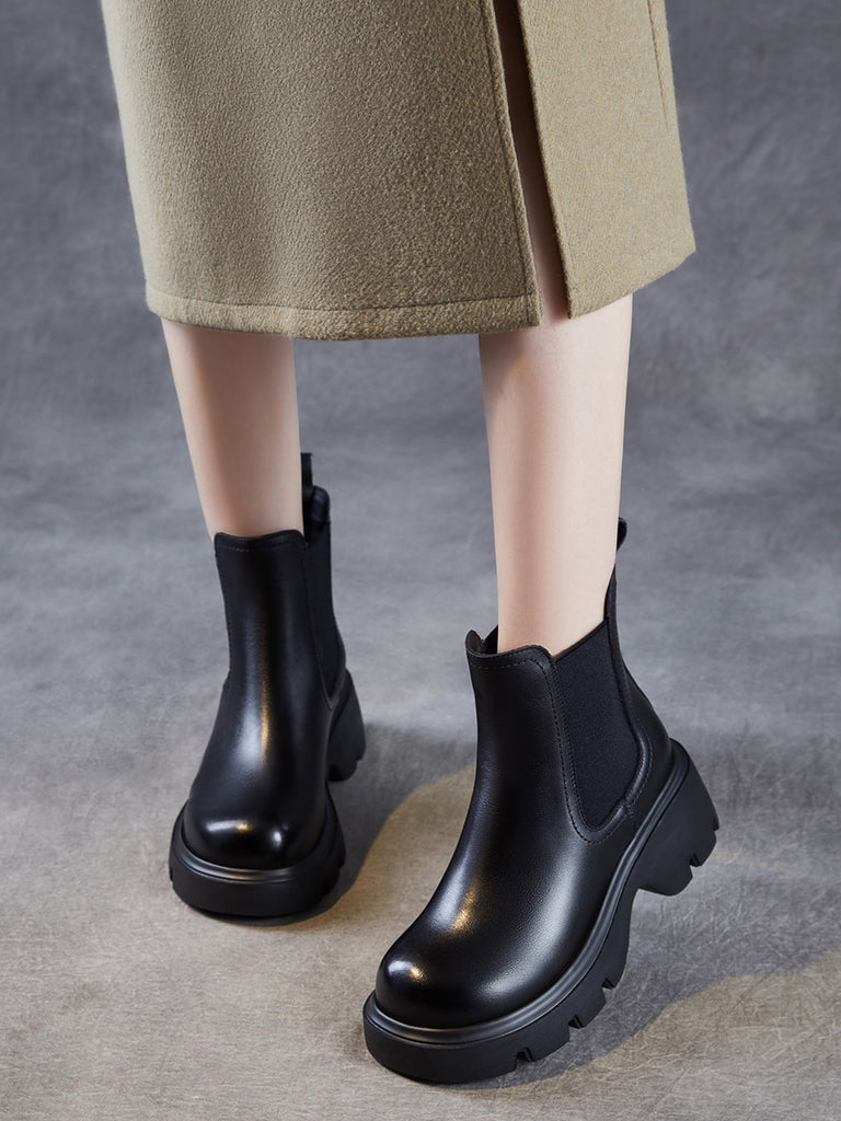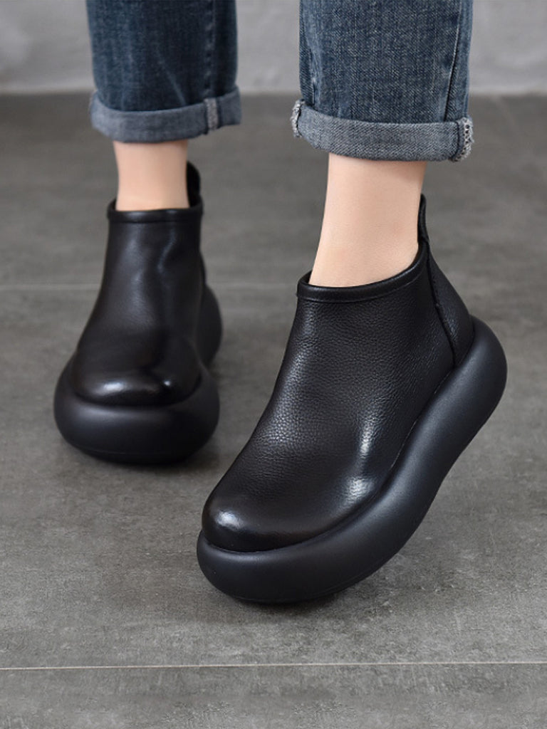 Women Vintage Pure Color Genuine Leather Platform Boots