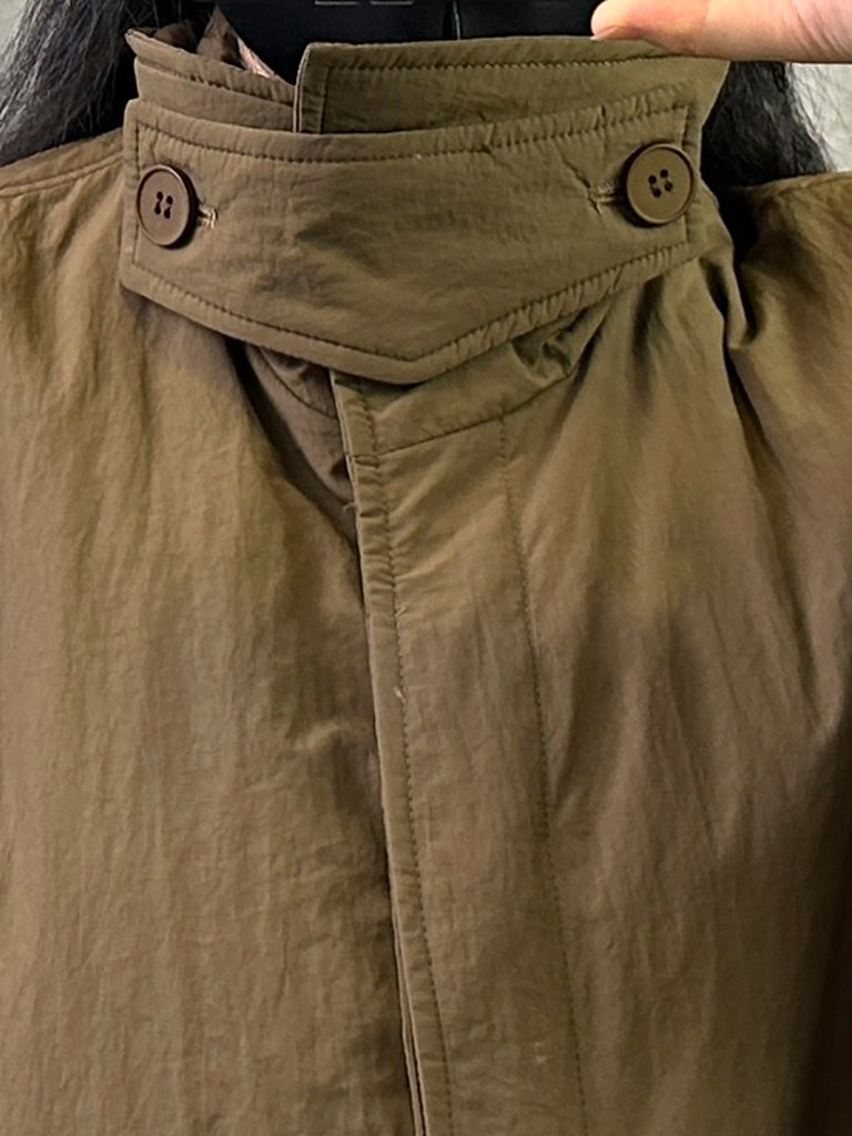 Women Winter Pure Color Turn-down Collar Long Padded Coat