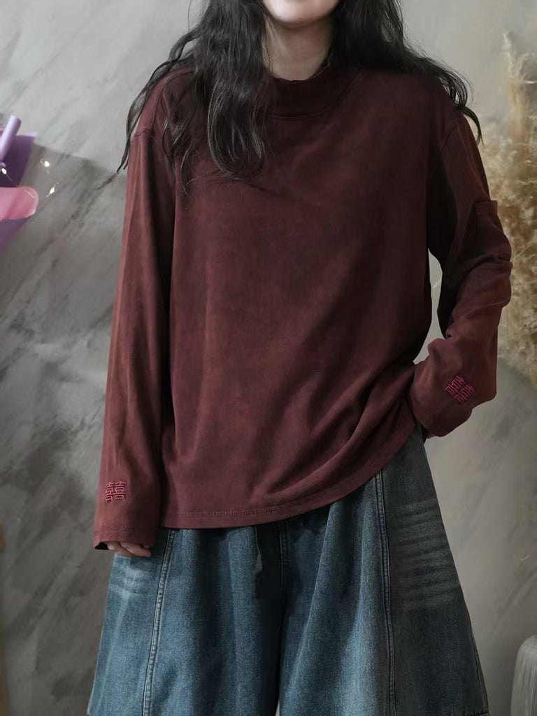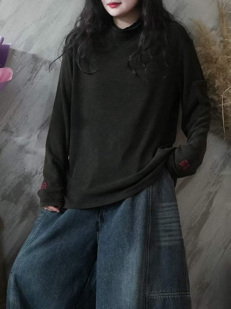 Women Autumn Casual 100%Cotton Half-Turtleneck Blouse