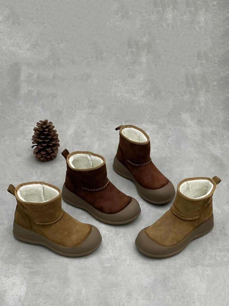 Women Vintage Winter Leather Fleece-lined Flat Boots