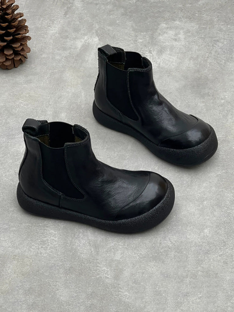 Women Winter Genuine Leather Spliced Flat Ankle Boots