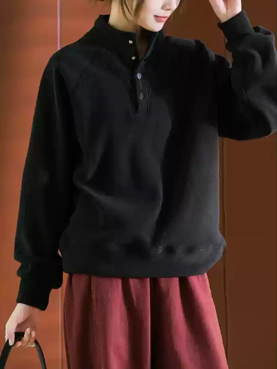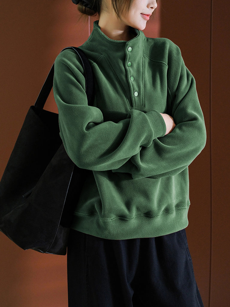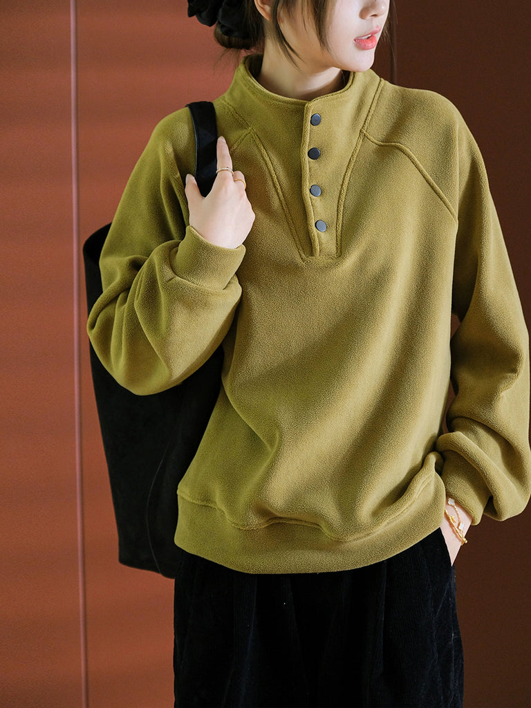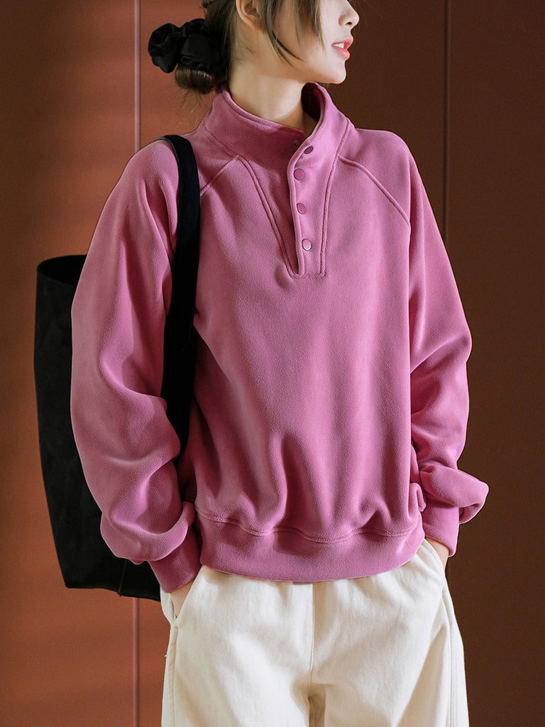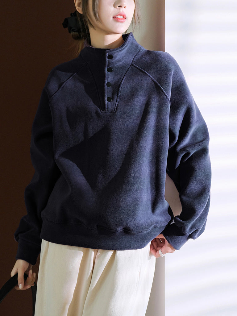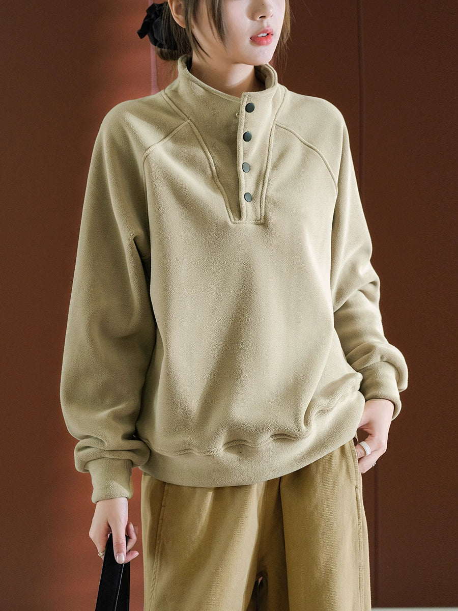 Women Casual Autumn Pure Color Fleece Stand Collar Blouse