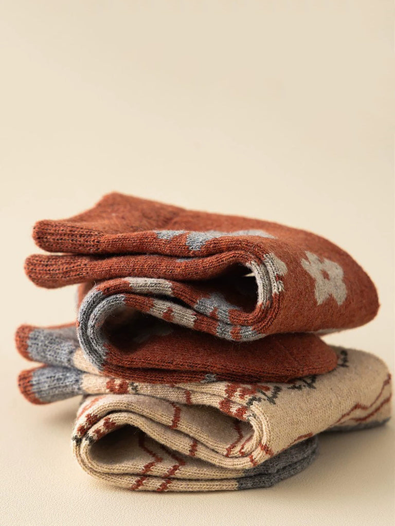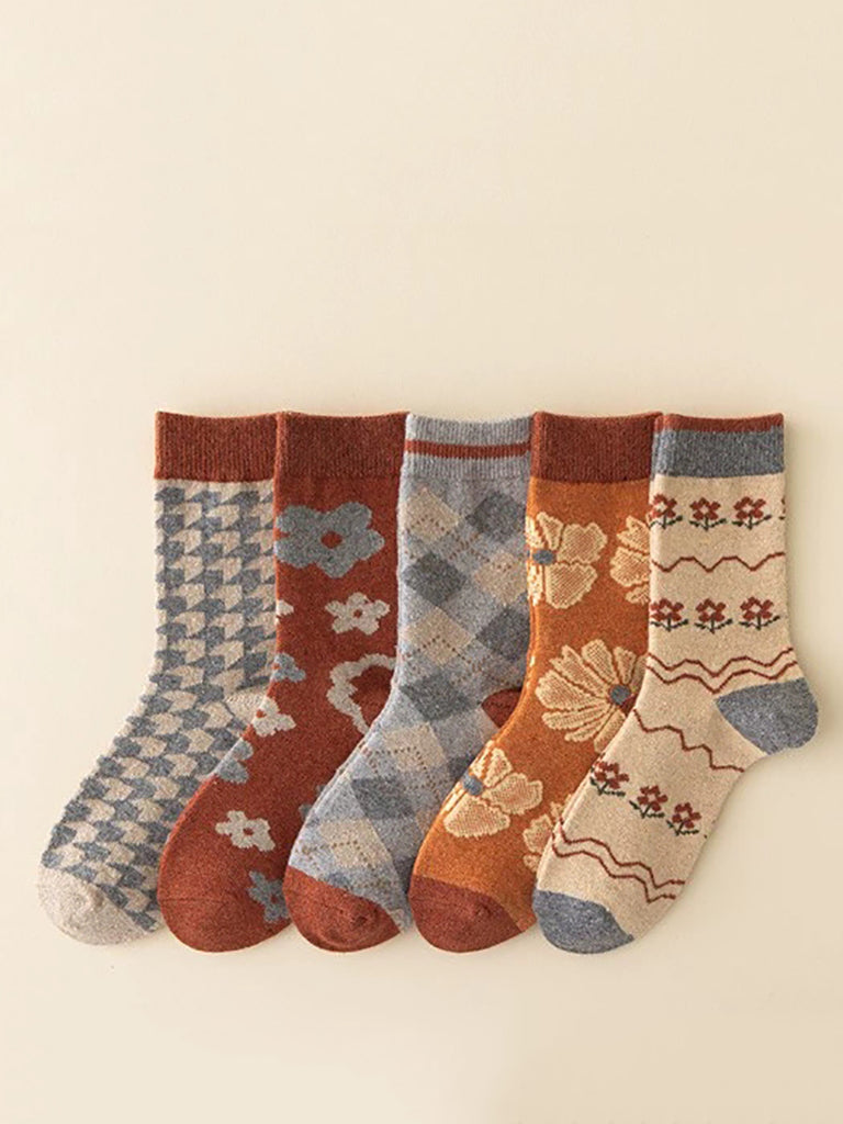 5 Pairs Women Vintage Flower Warm Socks