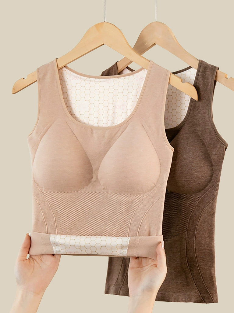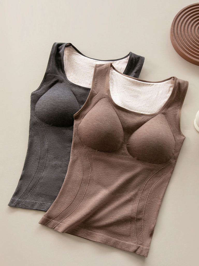 Women Winter Warm Pure Color With Bar Pads Base Vest