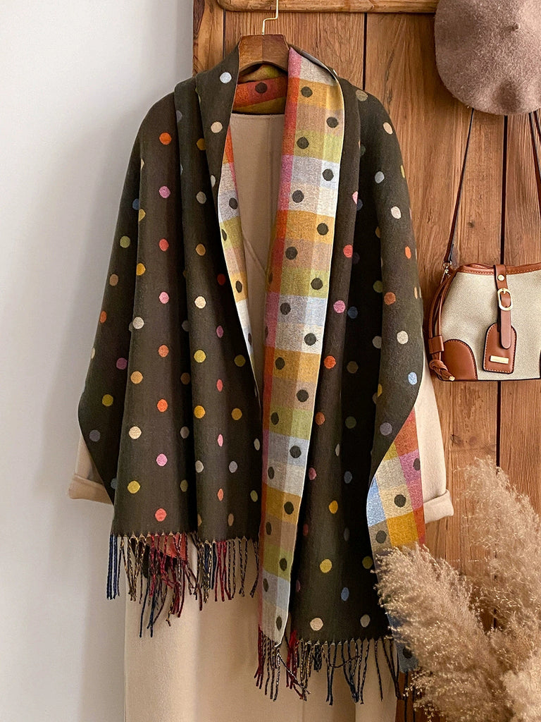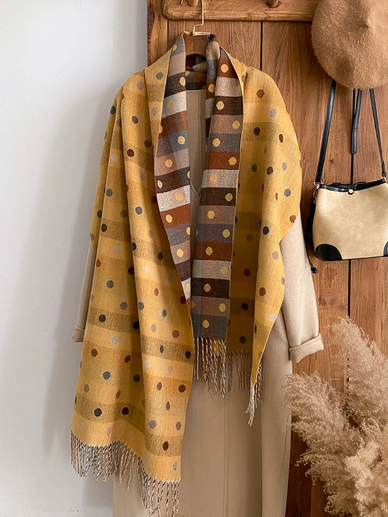 Women Winter Dot Jacquard Tassel Shawl Scarf